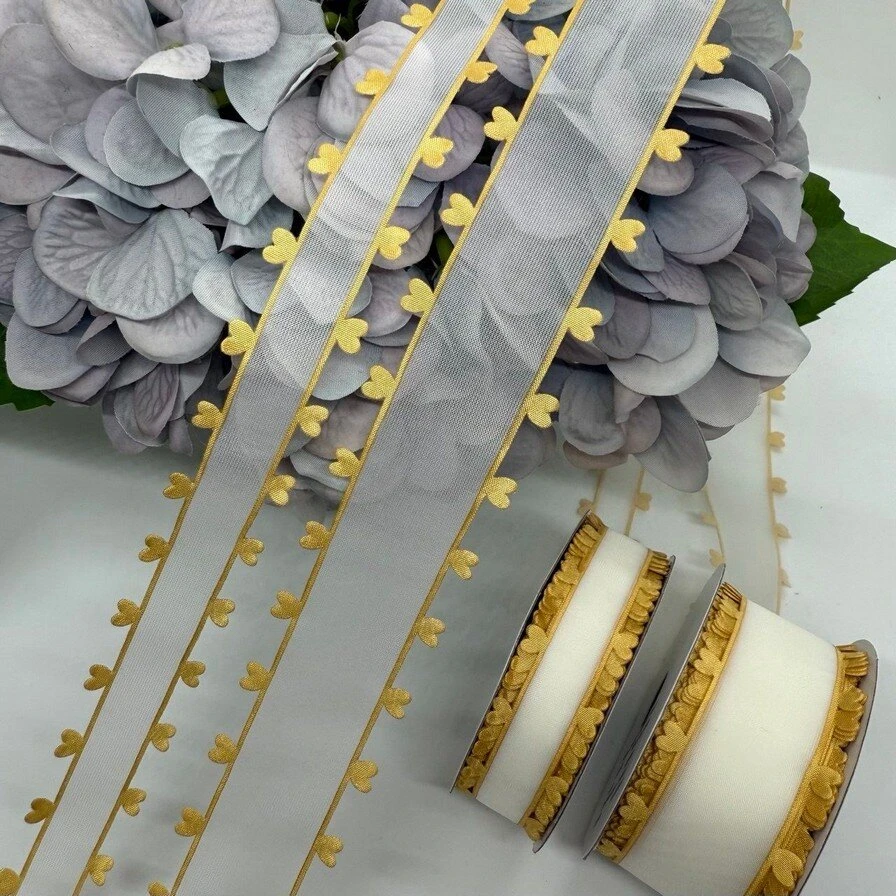 Стрічка декоративна з сердечками 2.5 см (5*20 ярдів/18,28 м.), жовтий+білий