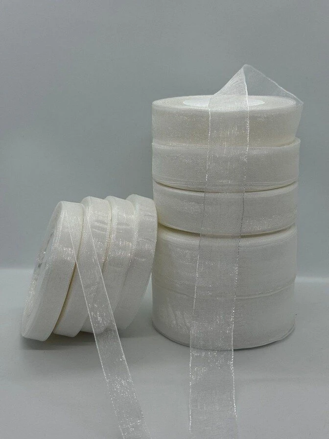 Стрічка з органзи — це напівпрозора декоративна стрічка з м’яким блиском і легкою текстурою. Вона чудово тримає форму, має привабливий вигляд і широко використовується у декорі, подарунковому пакуванні, флористиці та швейних проектах.