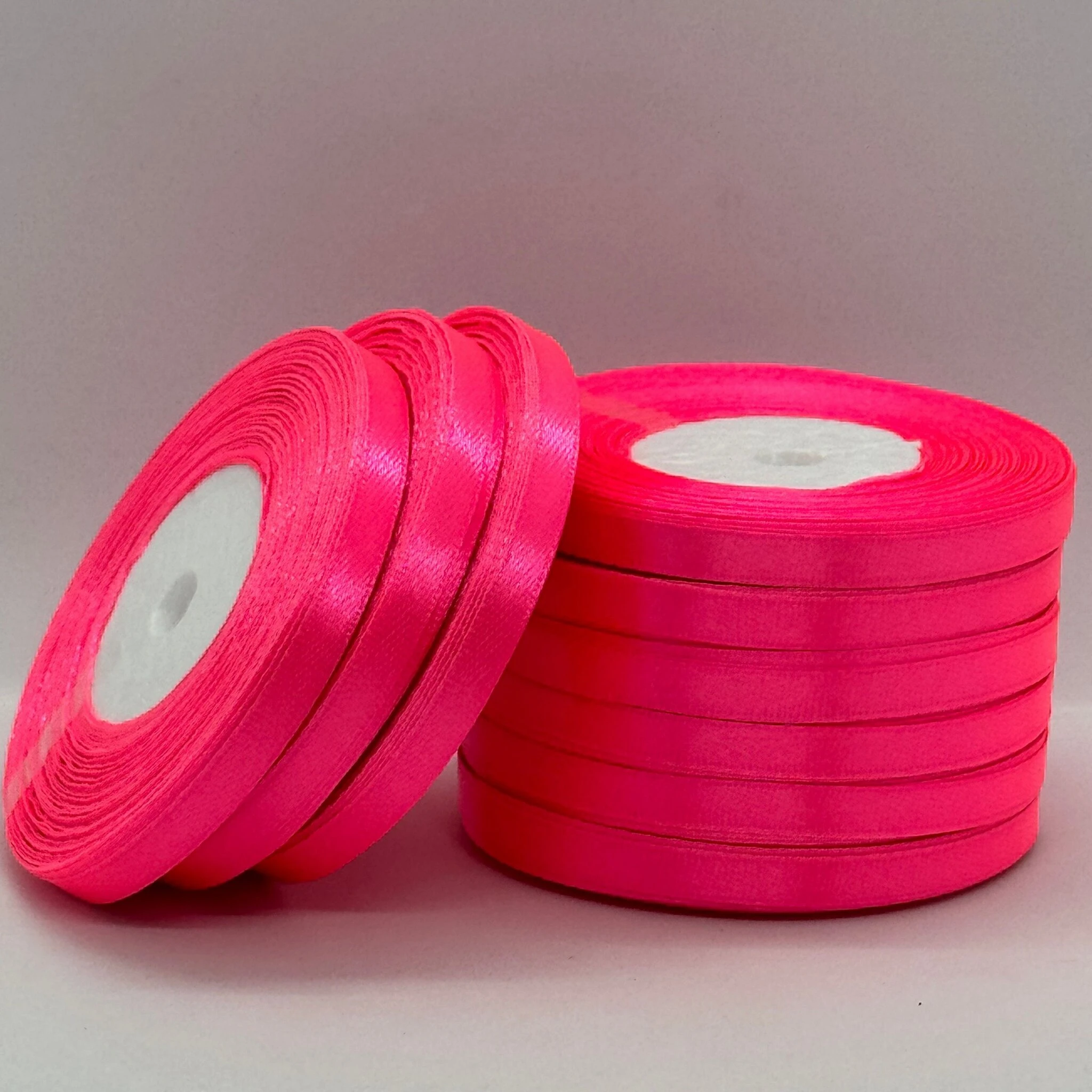 Стрічка атласна 0.6 см (10*36 ярдів), 14 неон рожевий