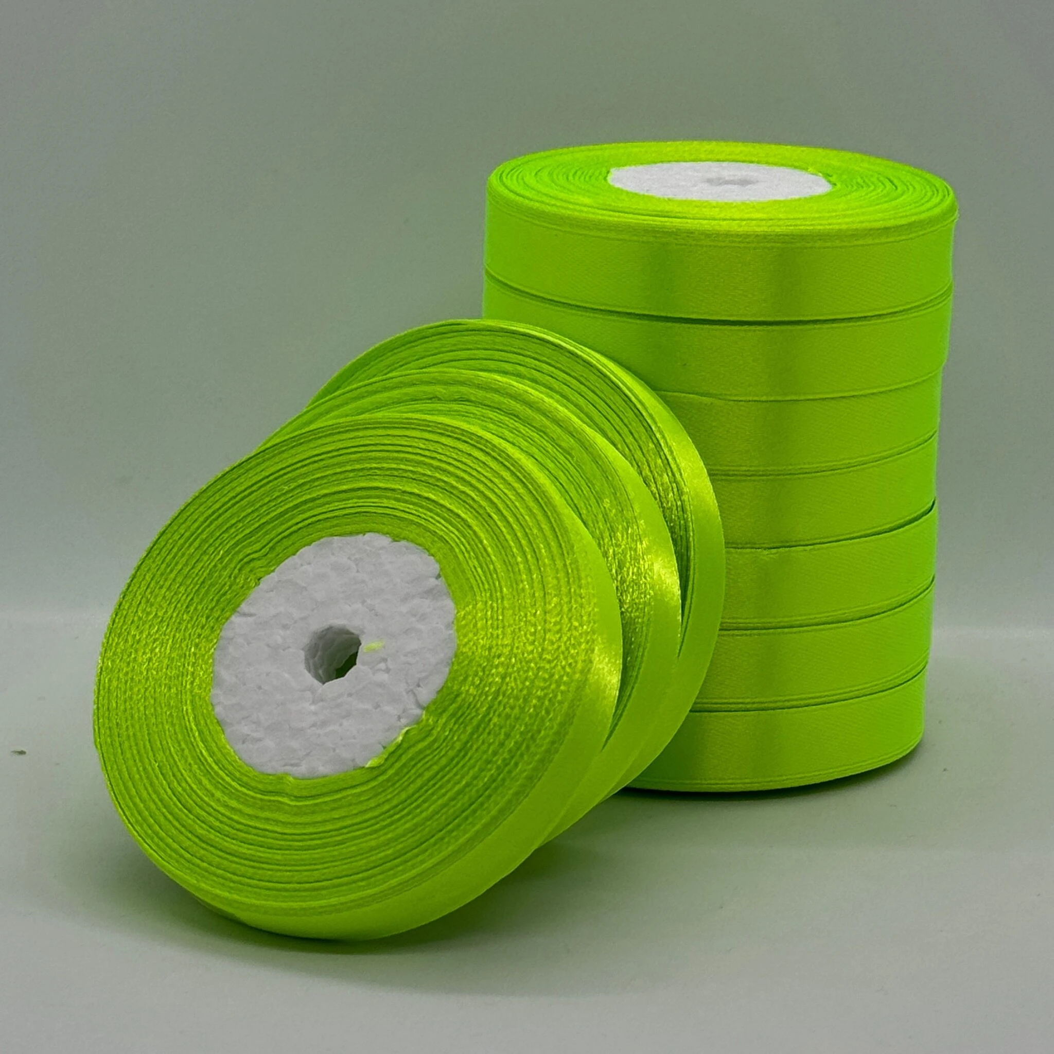 Стрічка атласна 1.2 см (10*36 ярдів), 57 неон салатовий