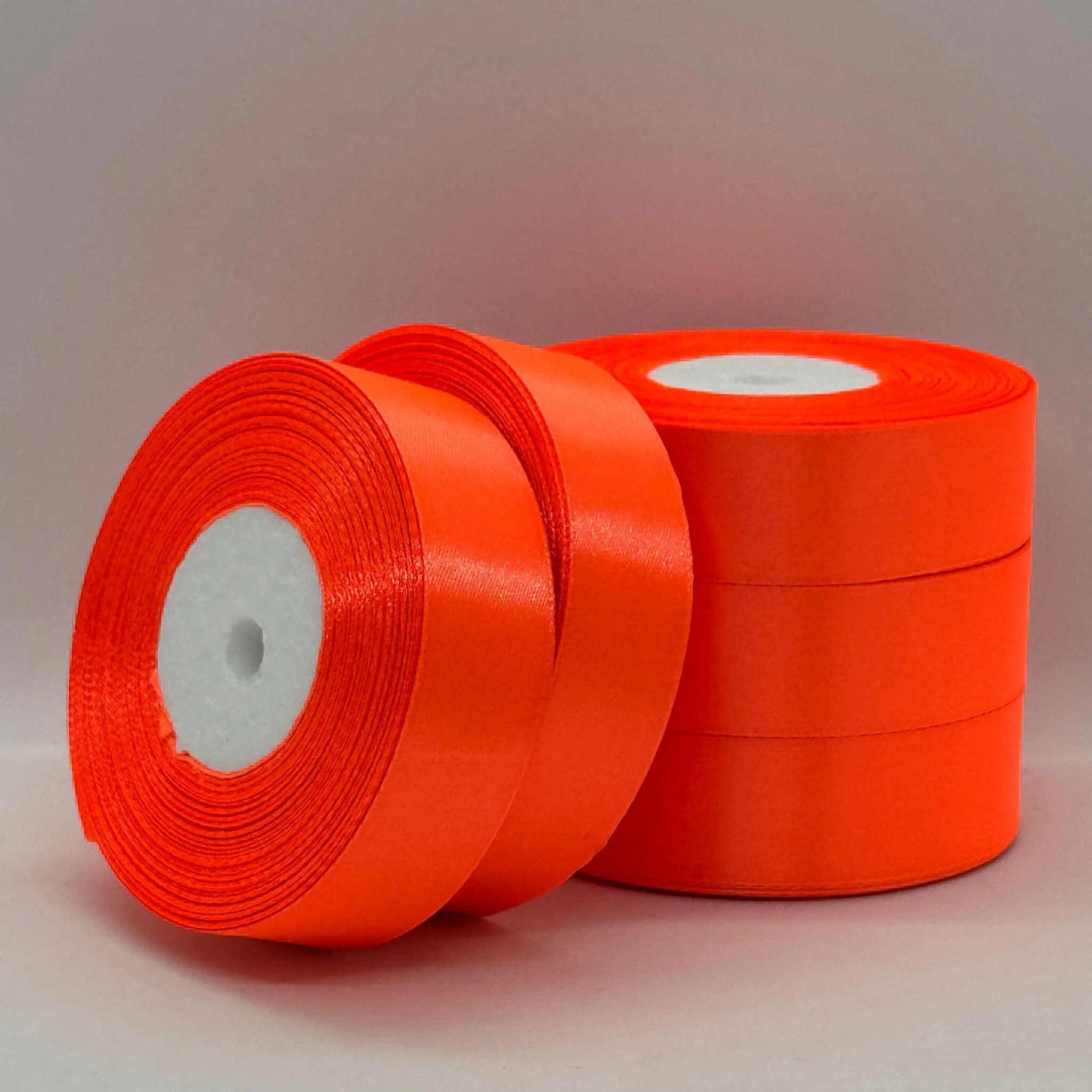 Стрічка атласна 2.5 см (5*36 ярдів), 23 неон помаранчевий