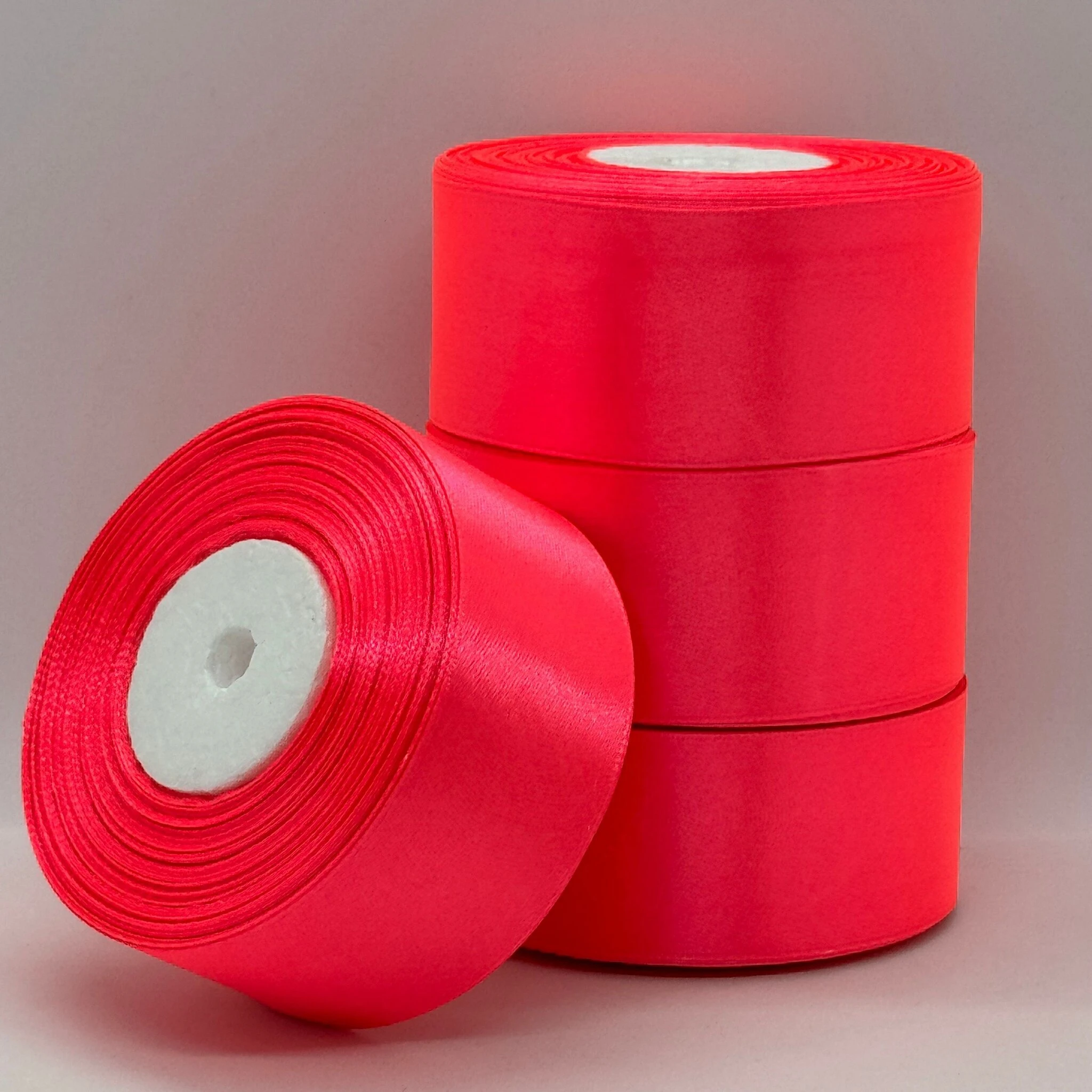 Стрічка атласна 4 см (5*36 ярдів) , 14 неон рожевий