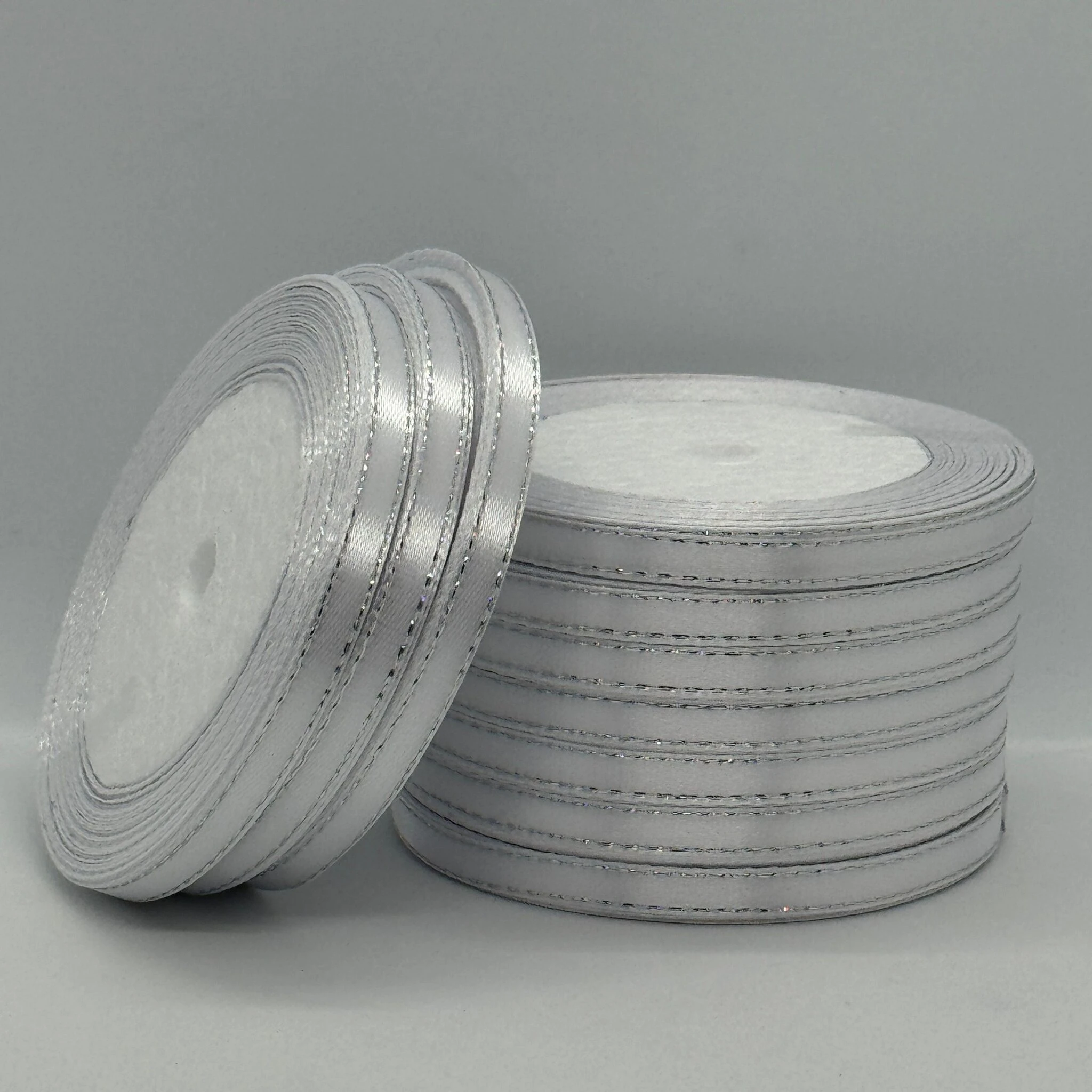 Стрічка атласна з люрекс 0,6 см+срібло (10*25 ярдів), 01 білий