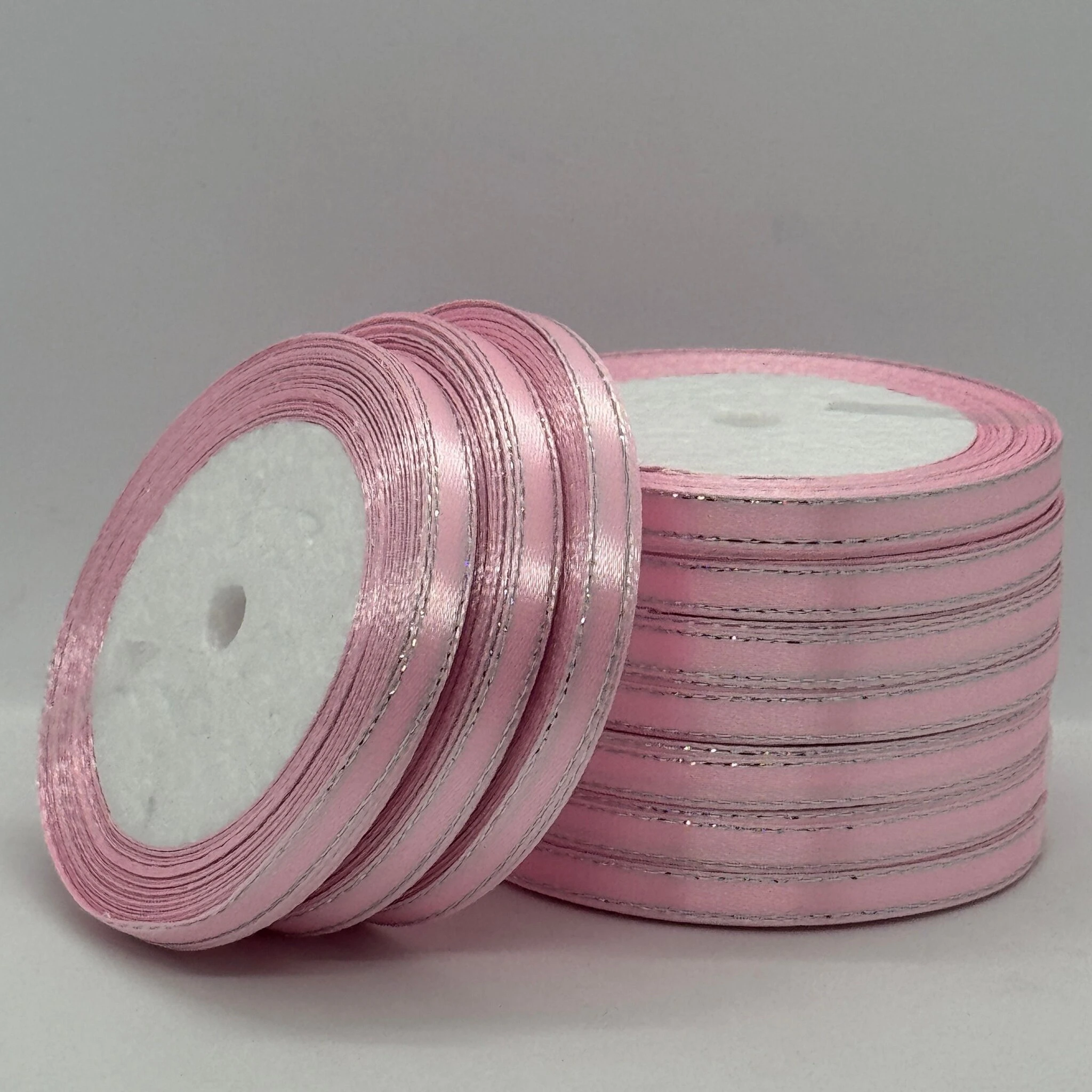 Стрічка атласна з люрекс 0,6 см+срібло (10*25 ярдів), 04 світло рожевий