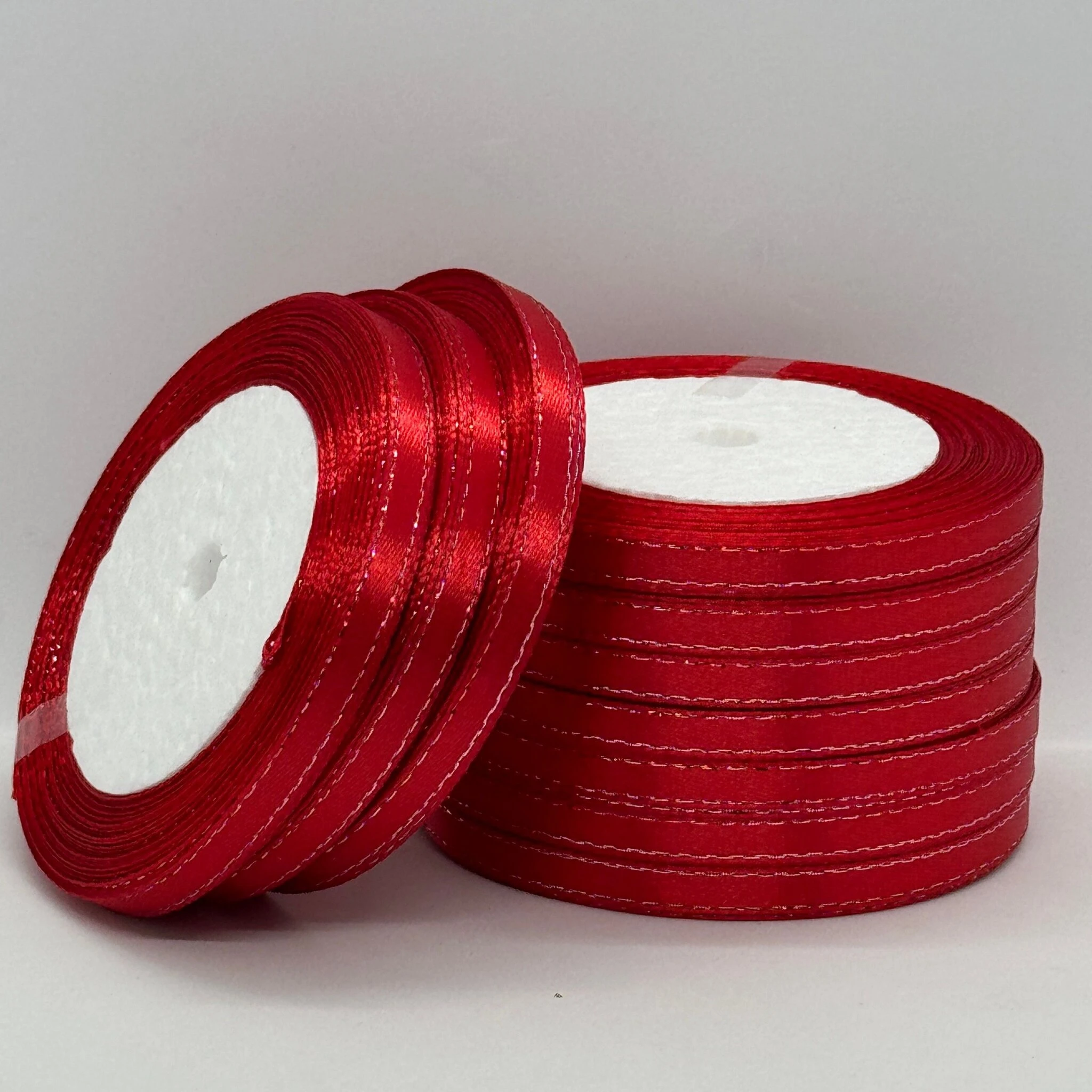 Стрічка атласна з люрекс 0,6 см+срібло (10*25 ярдів), 163 червоний
