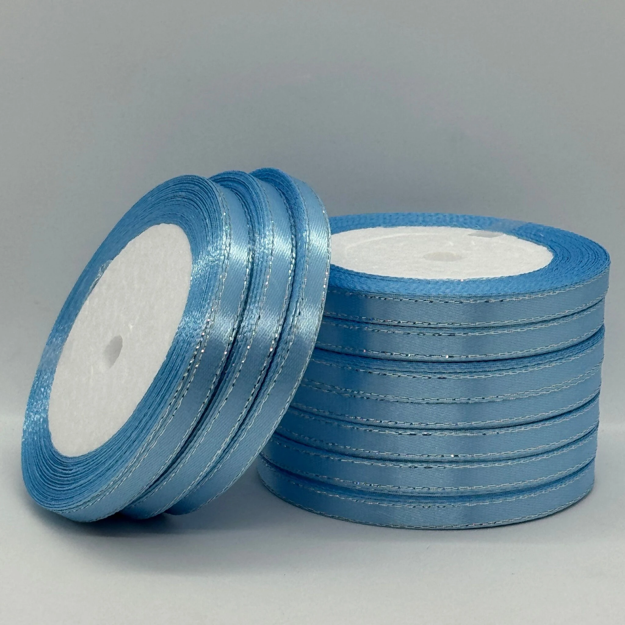 Стрічка атласна з люрекс 0,6 см+срібло (10*25 ярдів), 187 блакитний