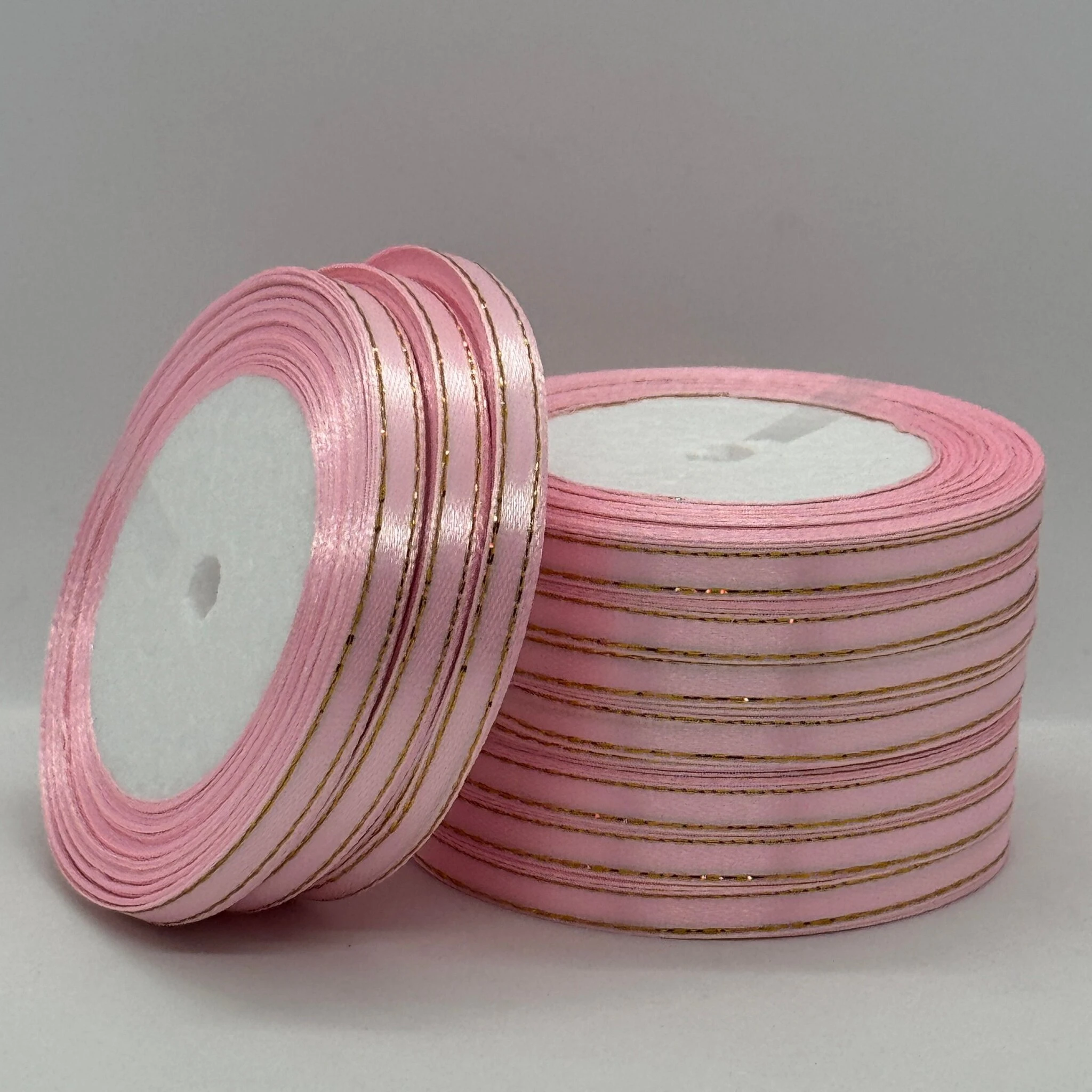 Стрічка атласна з люрекс 0,6 см+золото (10*25 ярдів), 04 світло рожевий