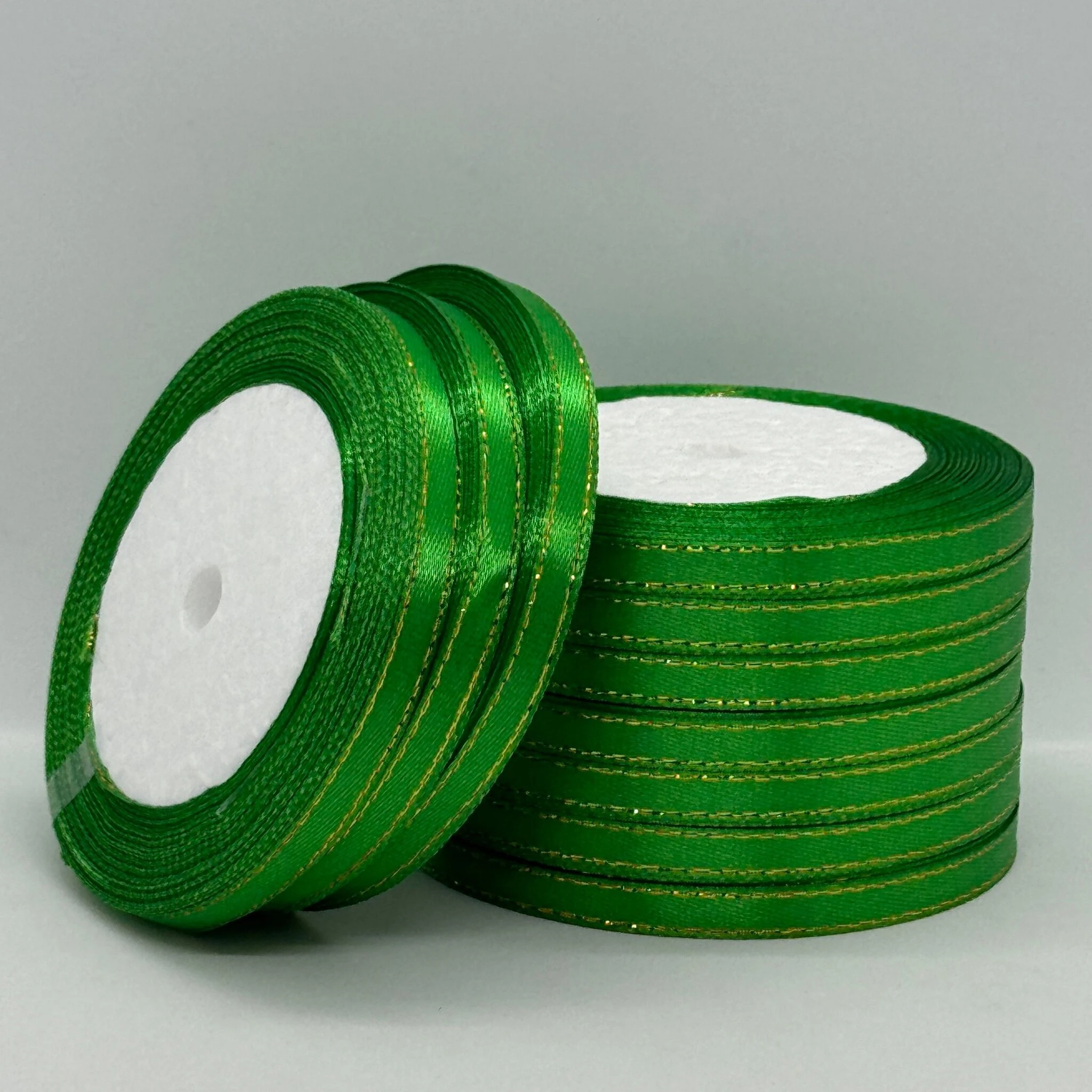 Стрічка атласна з люрекс 0,6 см+золото (10*25 ярдів), 19 зелений
