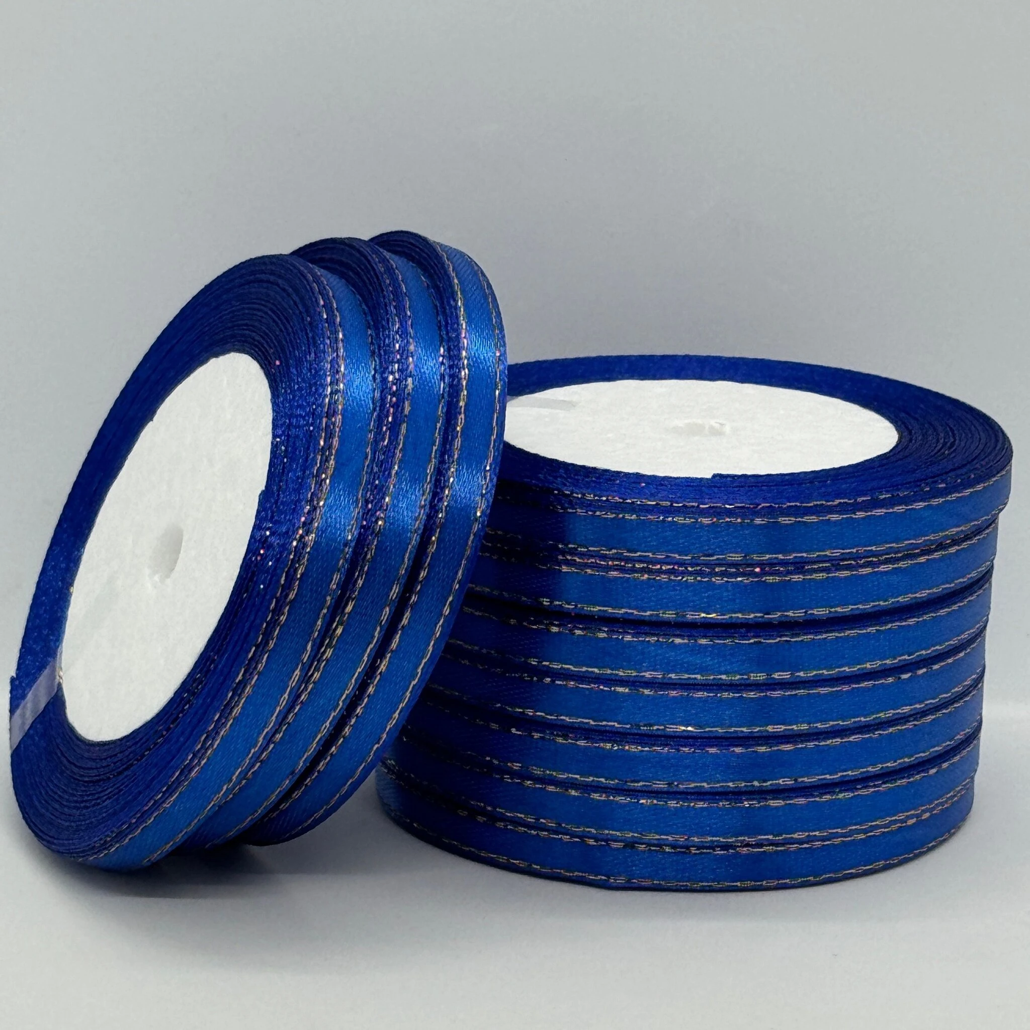 Стрічка атласна з люрекс 0,6 см+золото (10*25 ярдів), 40 електрик