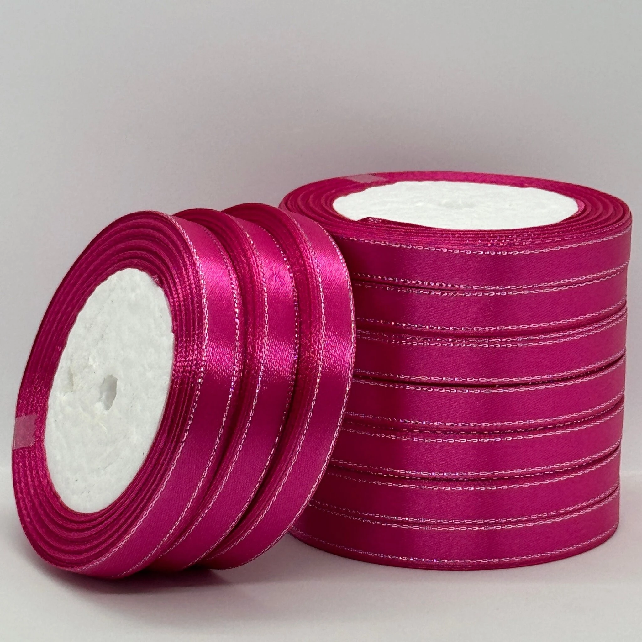 Стрічка атласна з люрекс 1 см+срібло (10*25 ярдів), 27 малиновий
