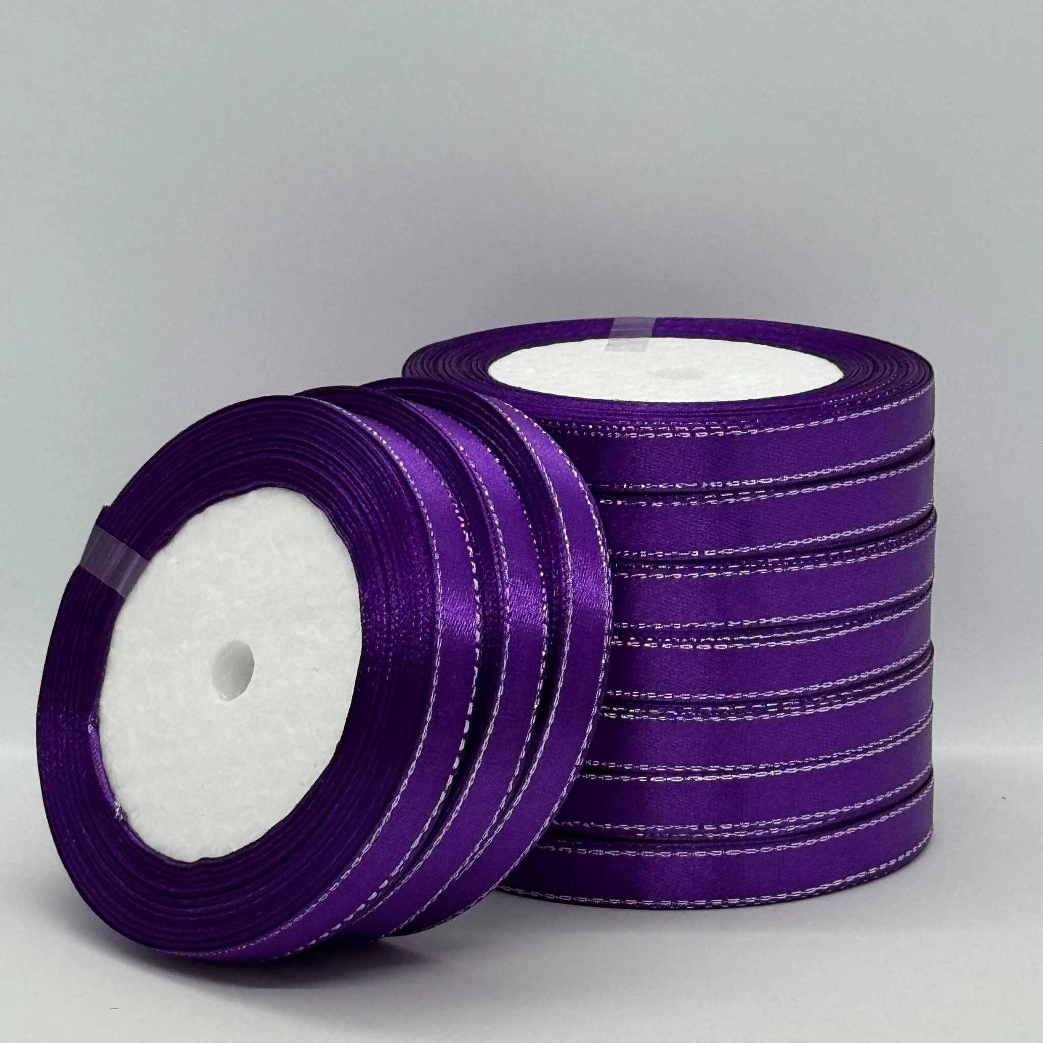 Стрічка атласна з люрекс 1 см+срібло (10*25 ярдів), 35 фіолетовий