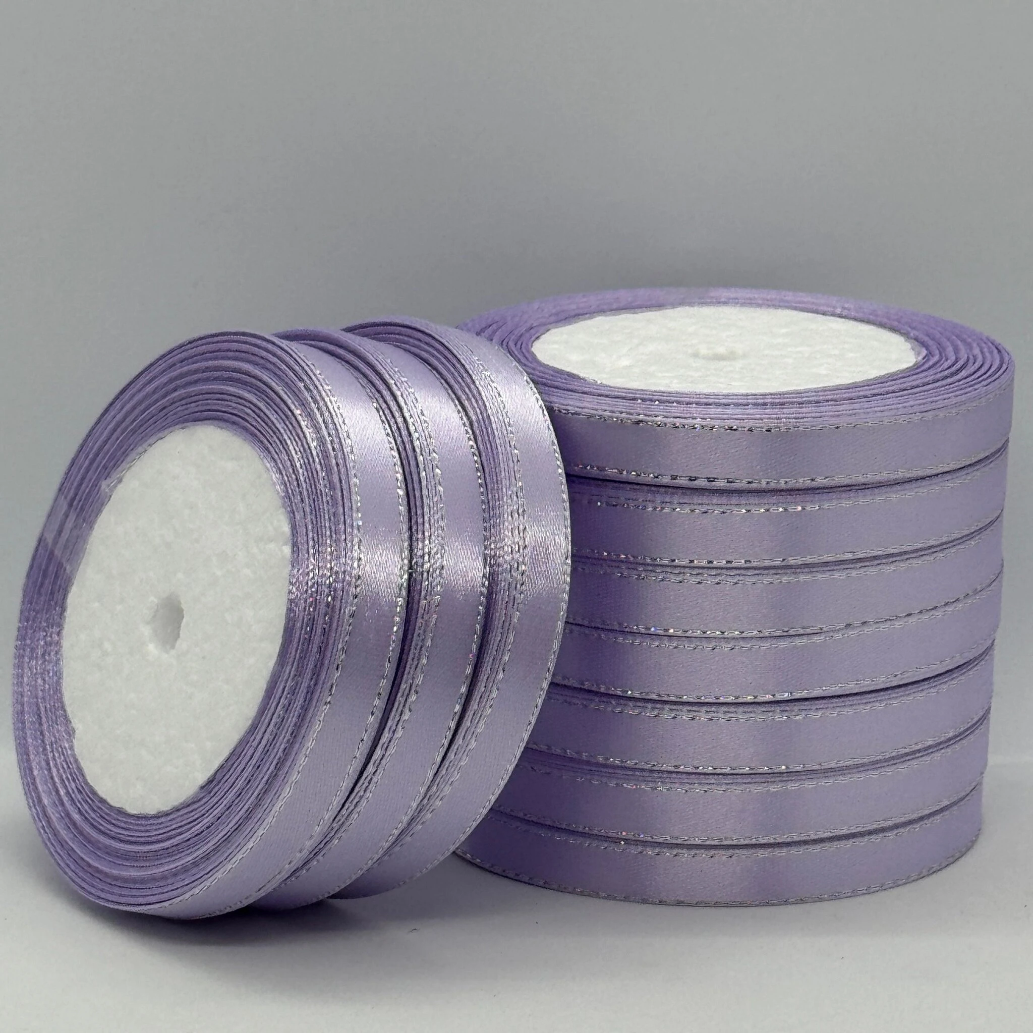 Стрічка атласна з люрекс 1 см+срібло (10*25 ярдів), 44 світло фіалковий