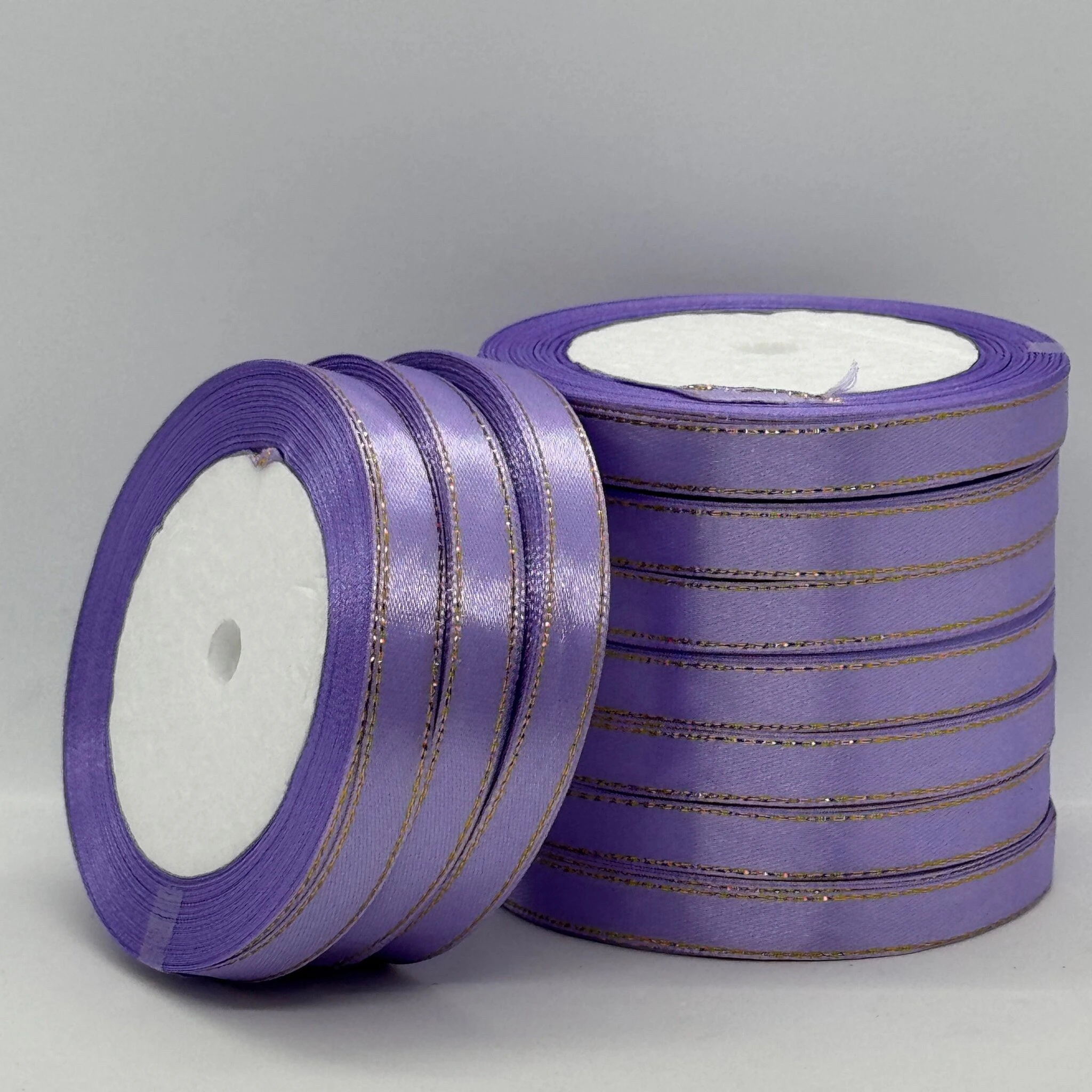 Стрічка атласна з люрекс 1 см+золото (10*25 ярдів), 21 фіалковий