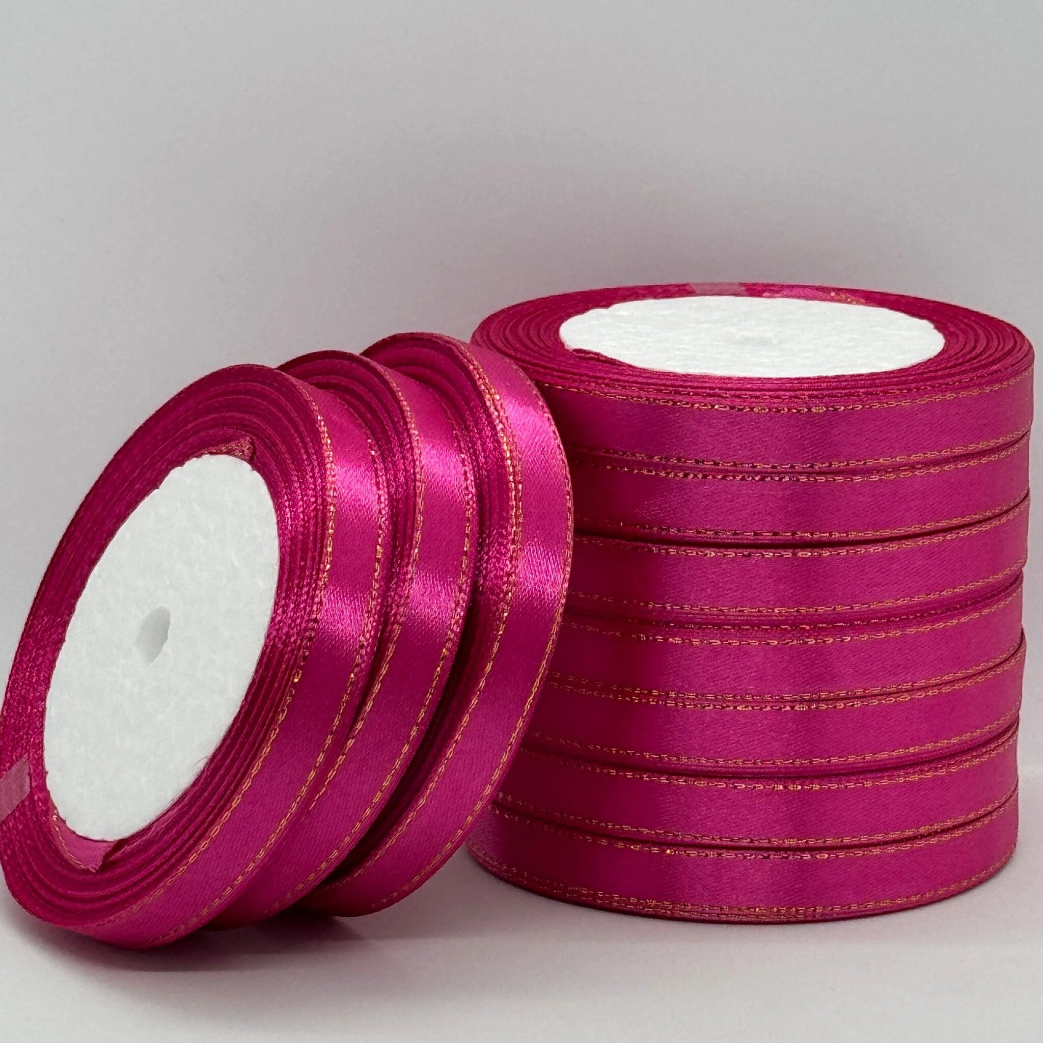 Стрічка атласна з люрекс 1 см+золото (10*25 ярдів), 27 малиновий