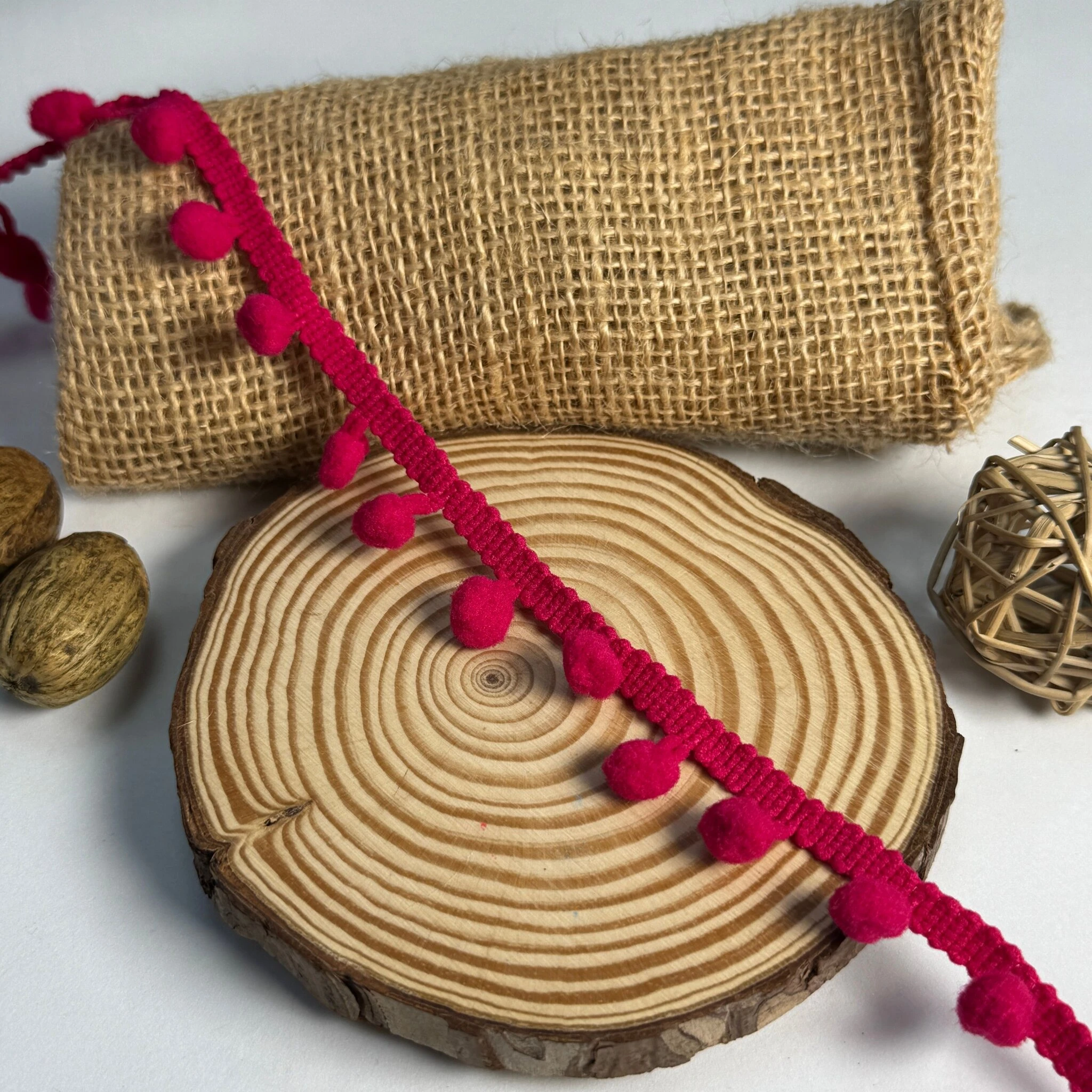 Тасьма з кульками — стильний декоративний елемент для оформлення одягу, аксесуарів та інтер’єру. М’які об’ємні помпони створюють оригінальний акцент і додають виробам грайливості та затишку.