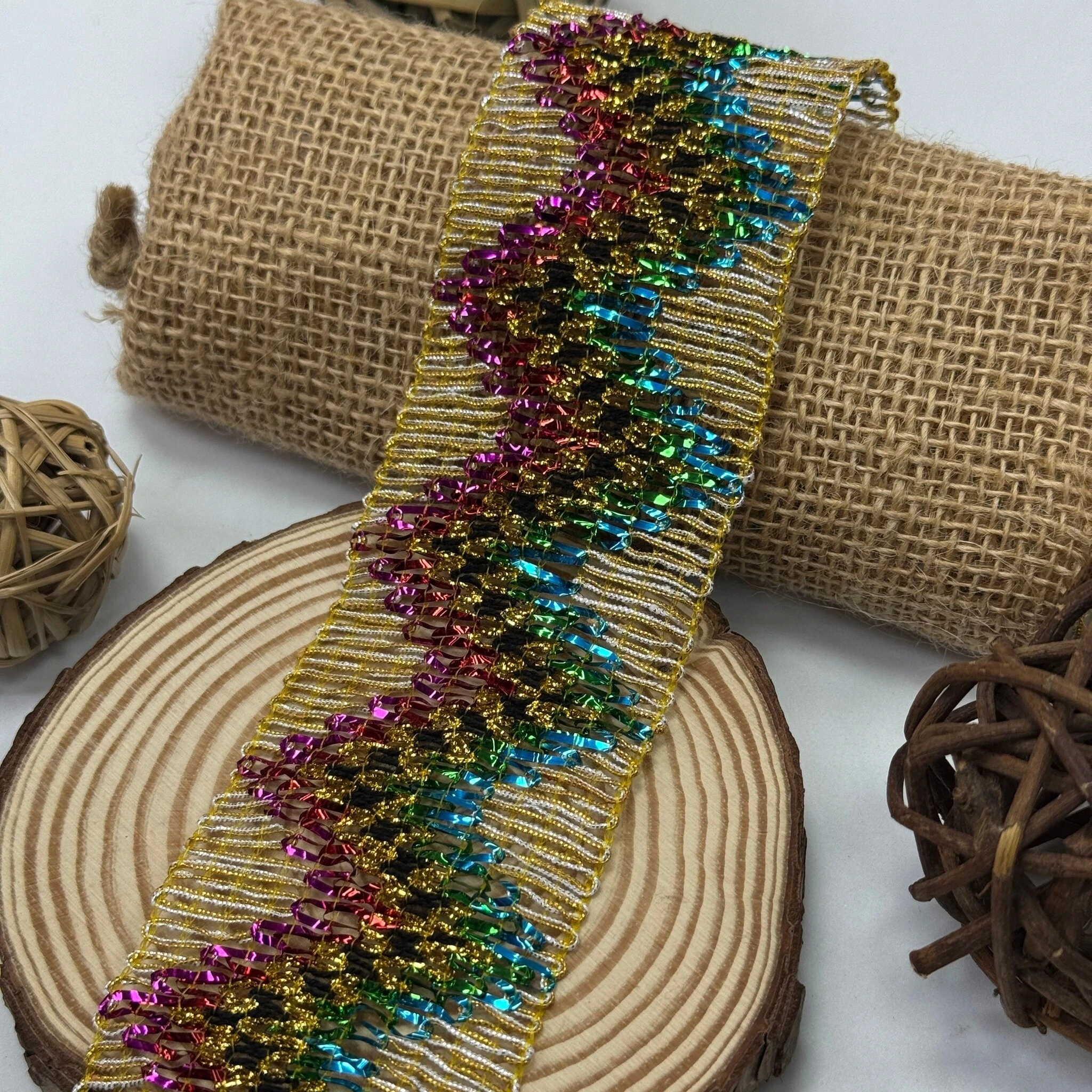 Тасьма люрекс 9570 (20 ярдів/18,28 м.), малина+золото+бірюза