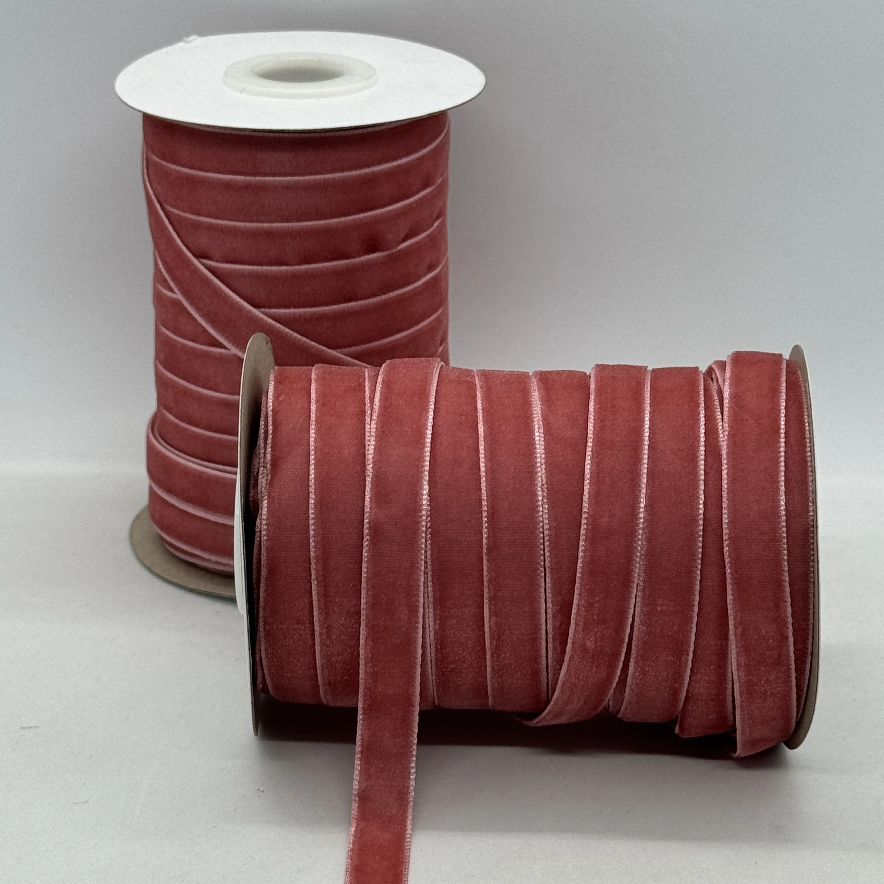 Стрічка оксамит 1 см (25 ярдів/22,75 м.), 10 рожева пудра