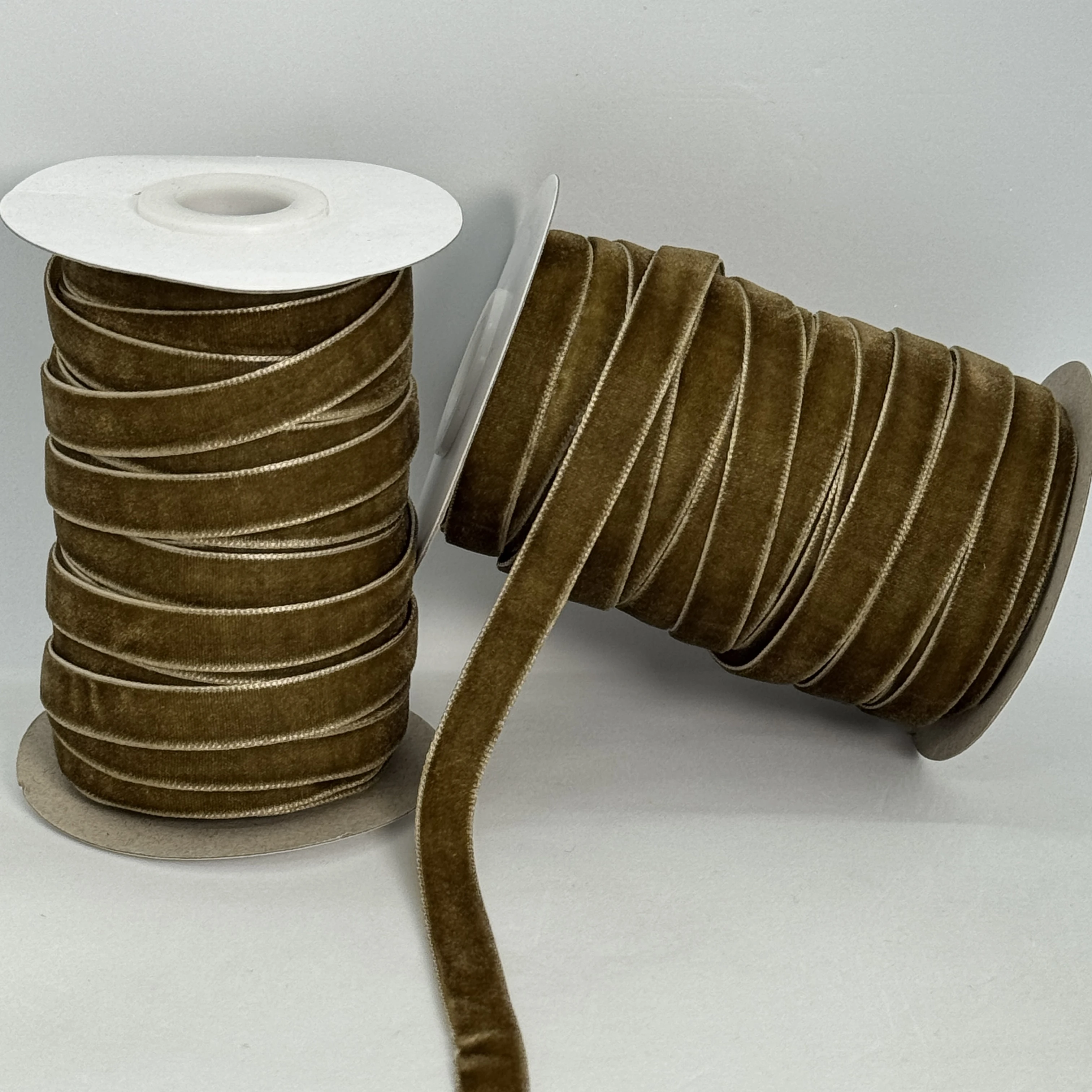 Стрічка оксамит 1 см (25 ярдів/22,75 м.), 61 бежевий