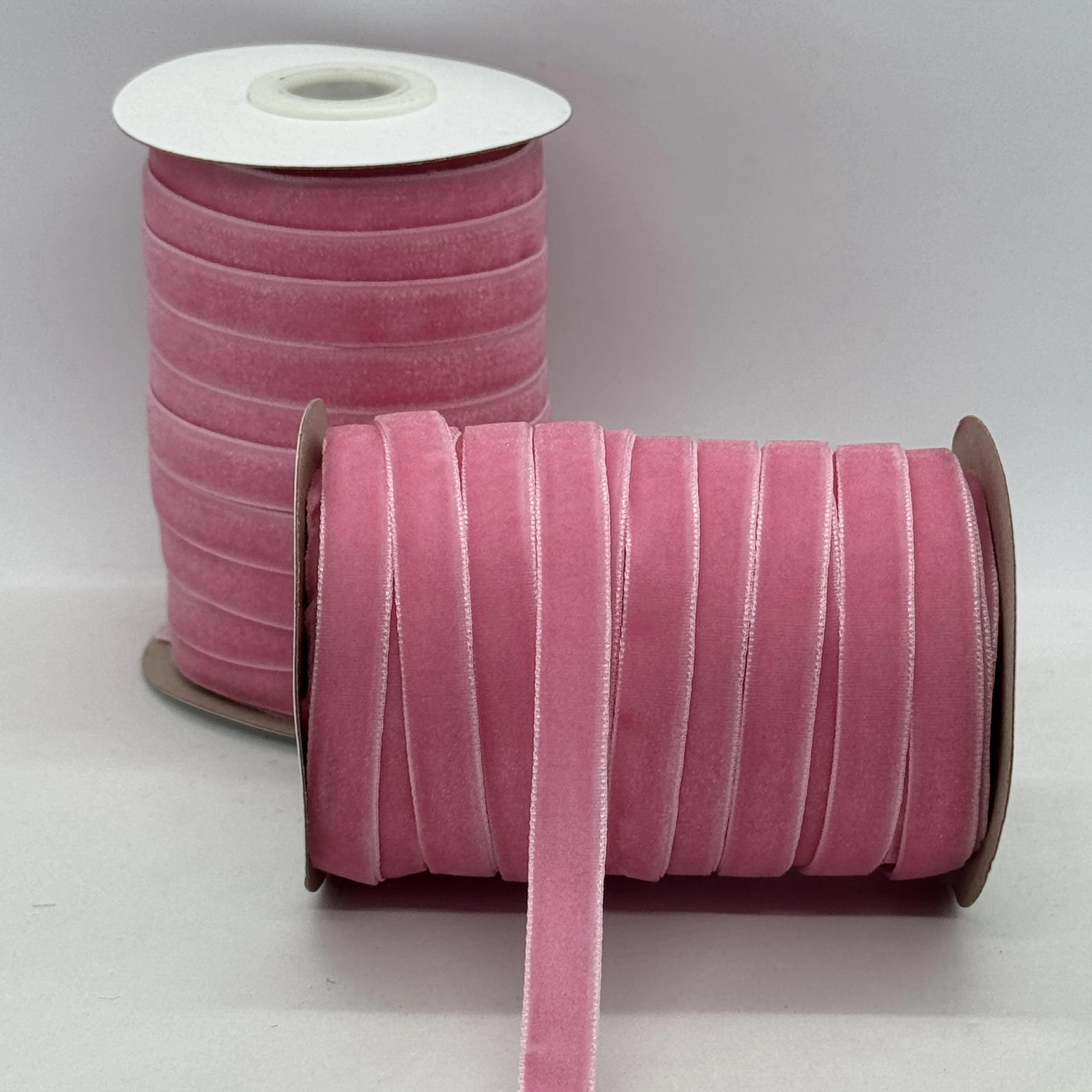 Стрічка оксамит 1 см (25 ярдів/22,75 м.), 75 рожевий
