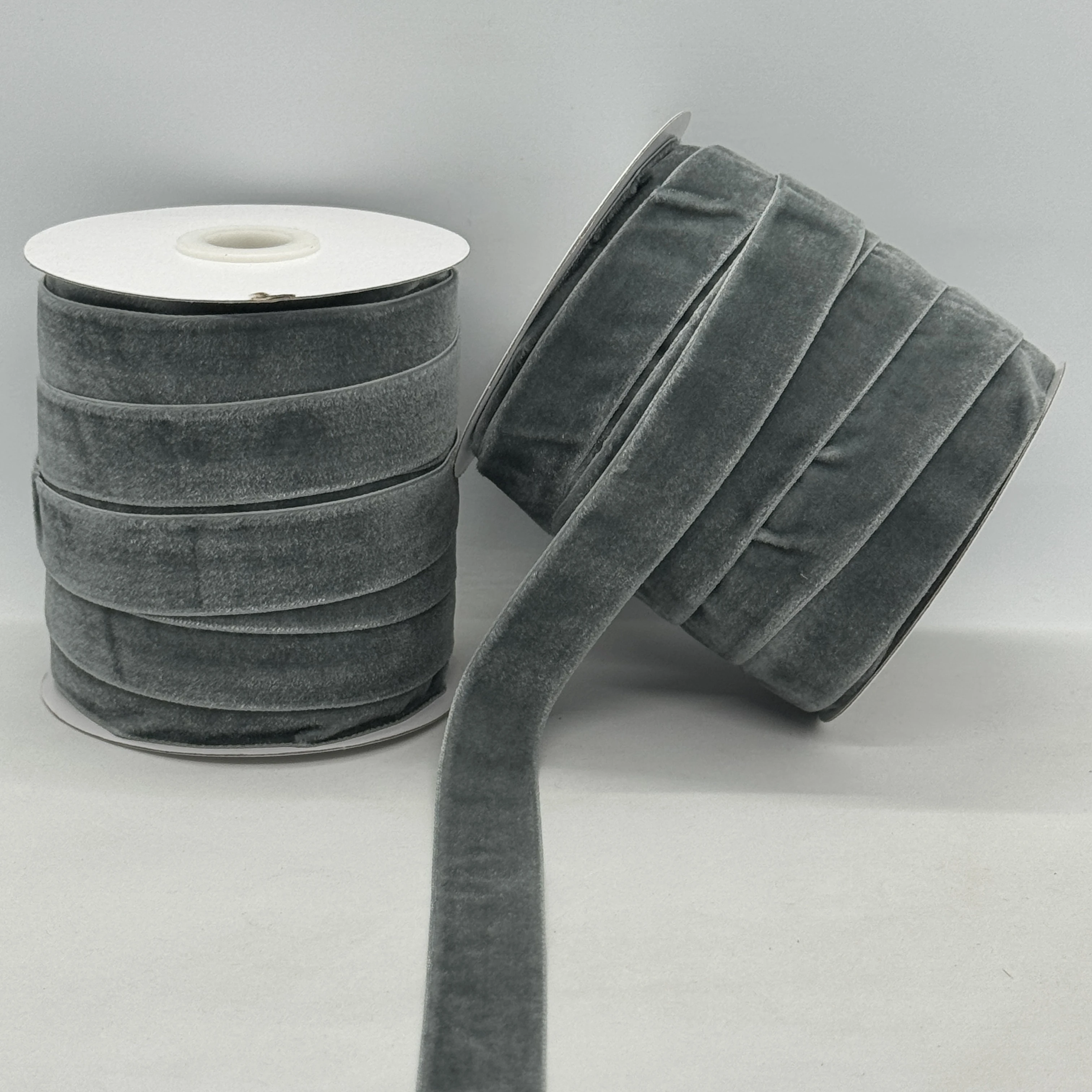 Стрічка оксамит 2 см (25 ярдів/22,75 м.), 63 темний сірий