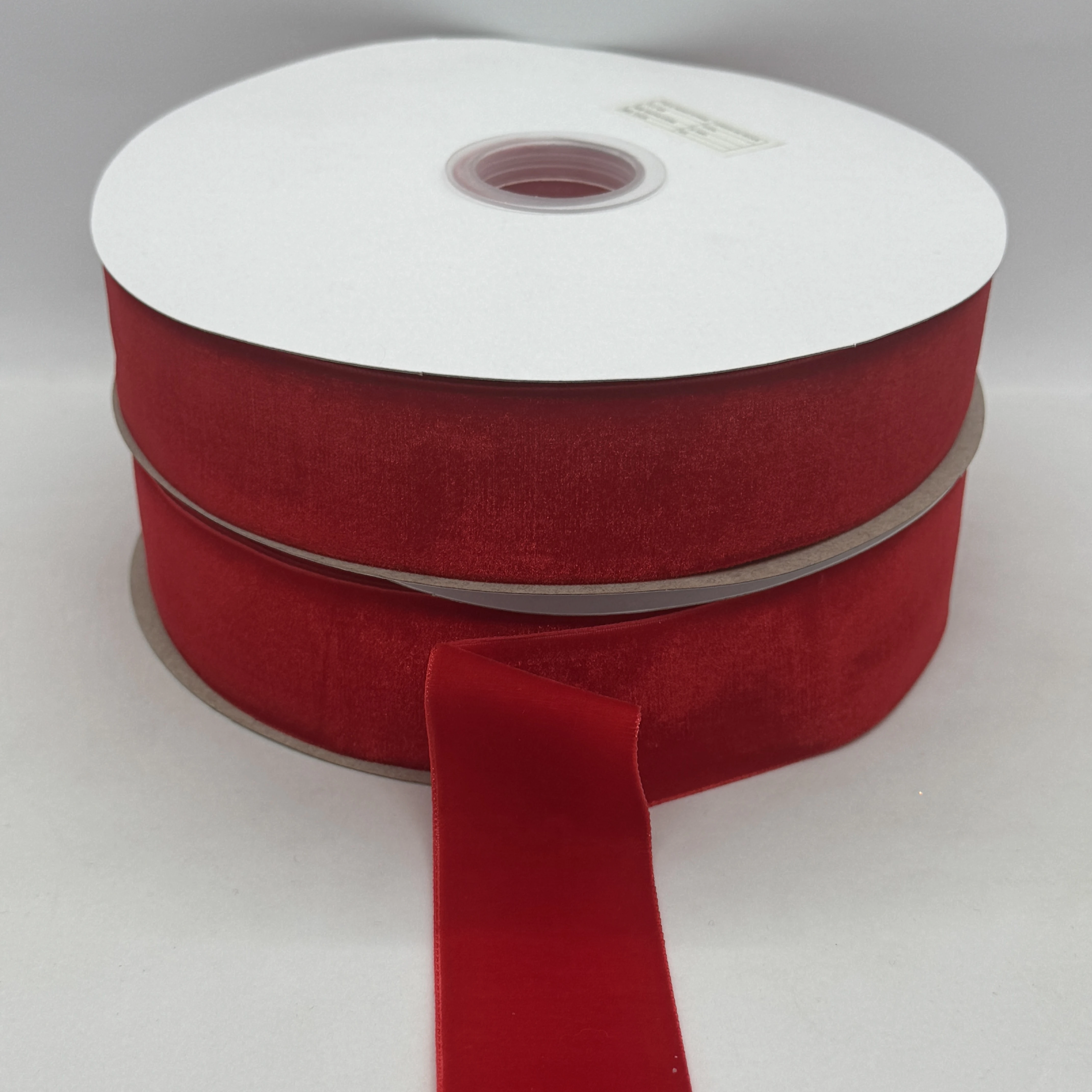 Стрічка оксамит 3.8 см (25 ярдів/22,75 м.), 40 світлий червоний