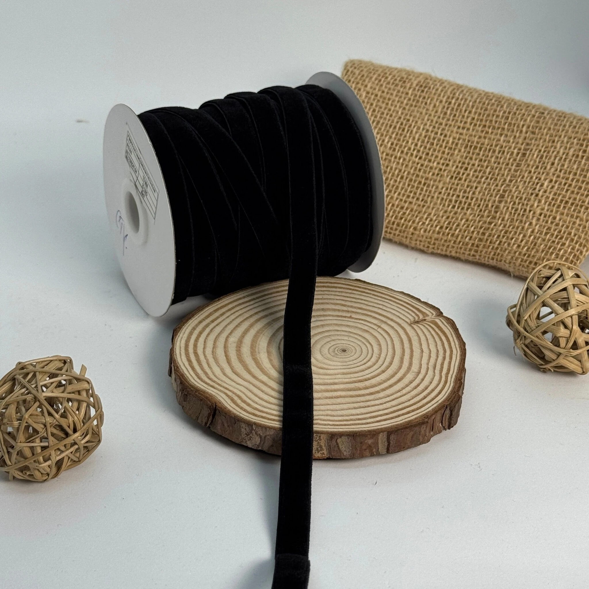 Стрічка оксамит еластична 1 см (25 ярдів/22,75 м), чорний