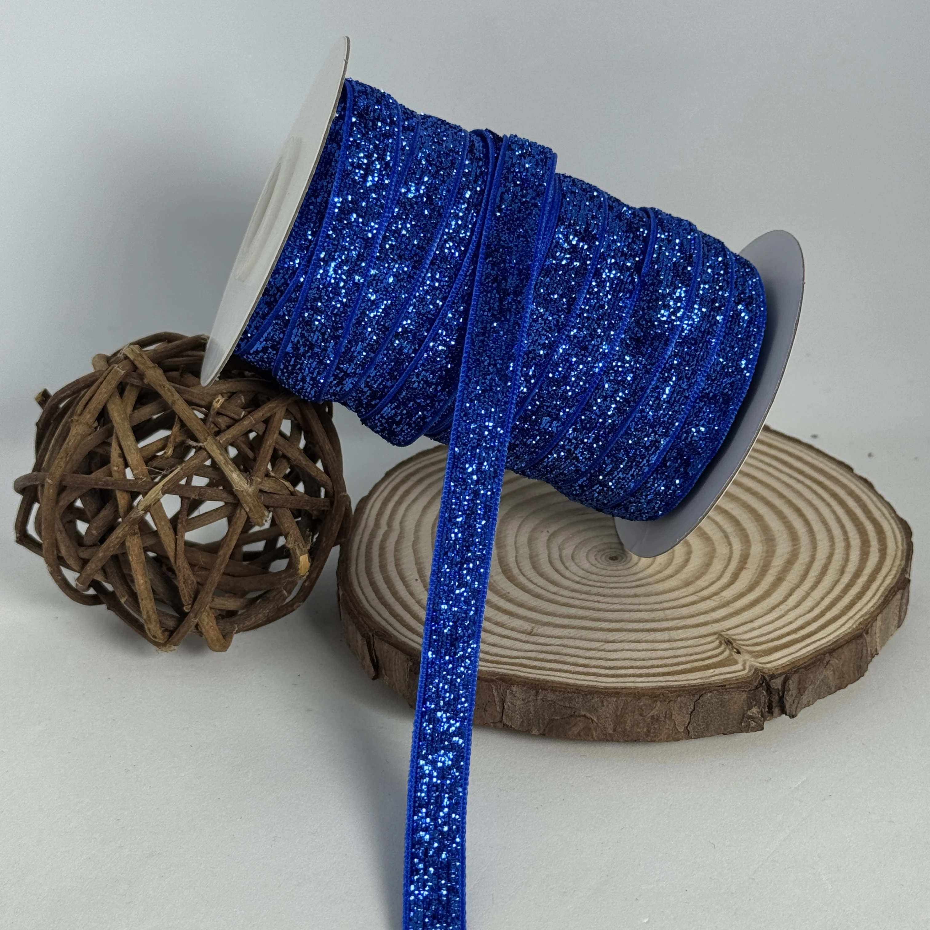 Стрічка оксамитова парча люрекс 1 см (25 ярдів/22,75 м.), 01 електрик