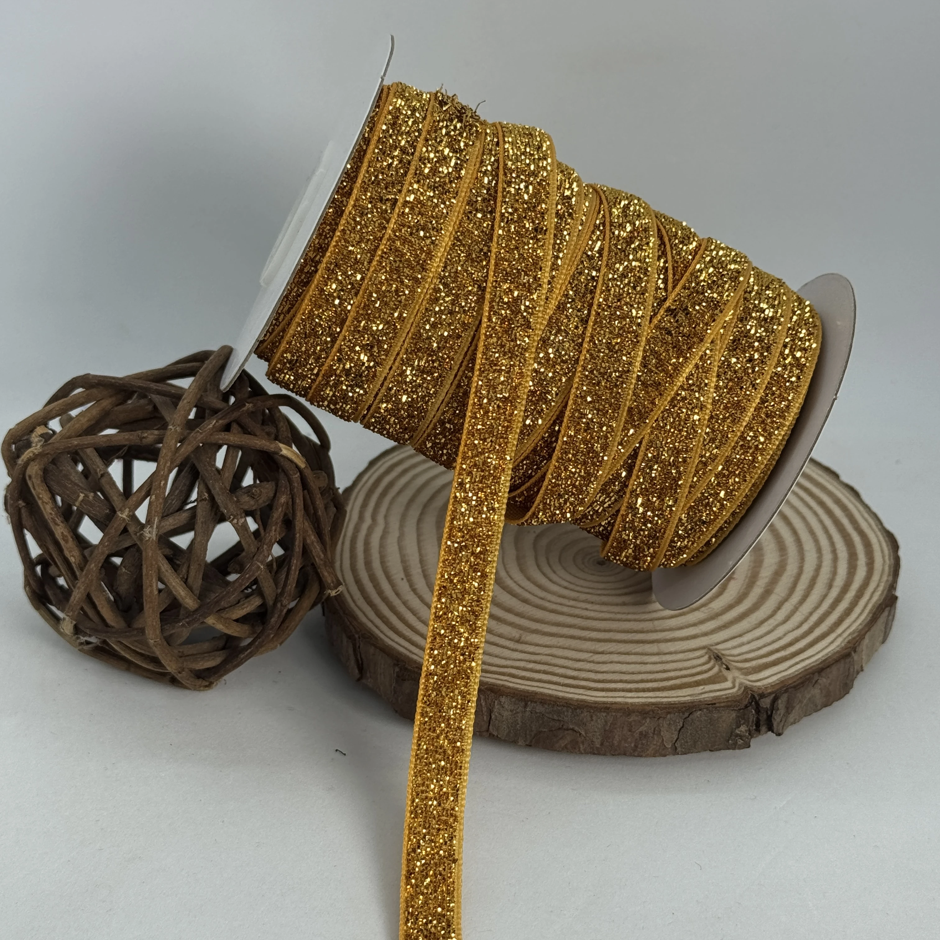 Стрічка оксамитова парча люрекс 1 см (25 ярдів/22,75 м.), 09 темне золото