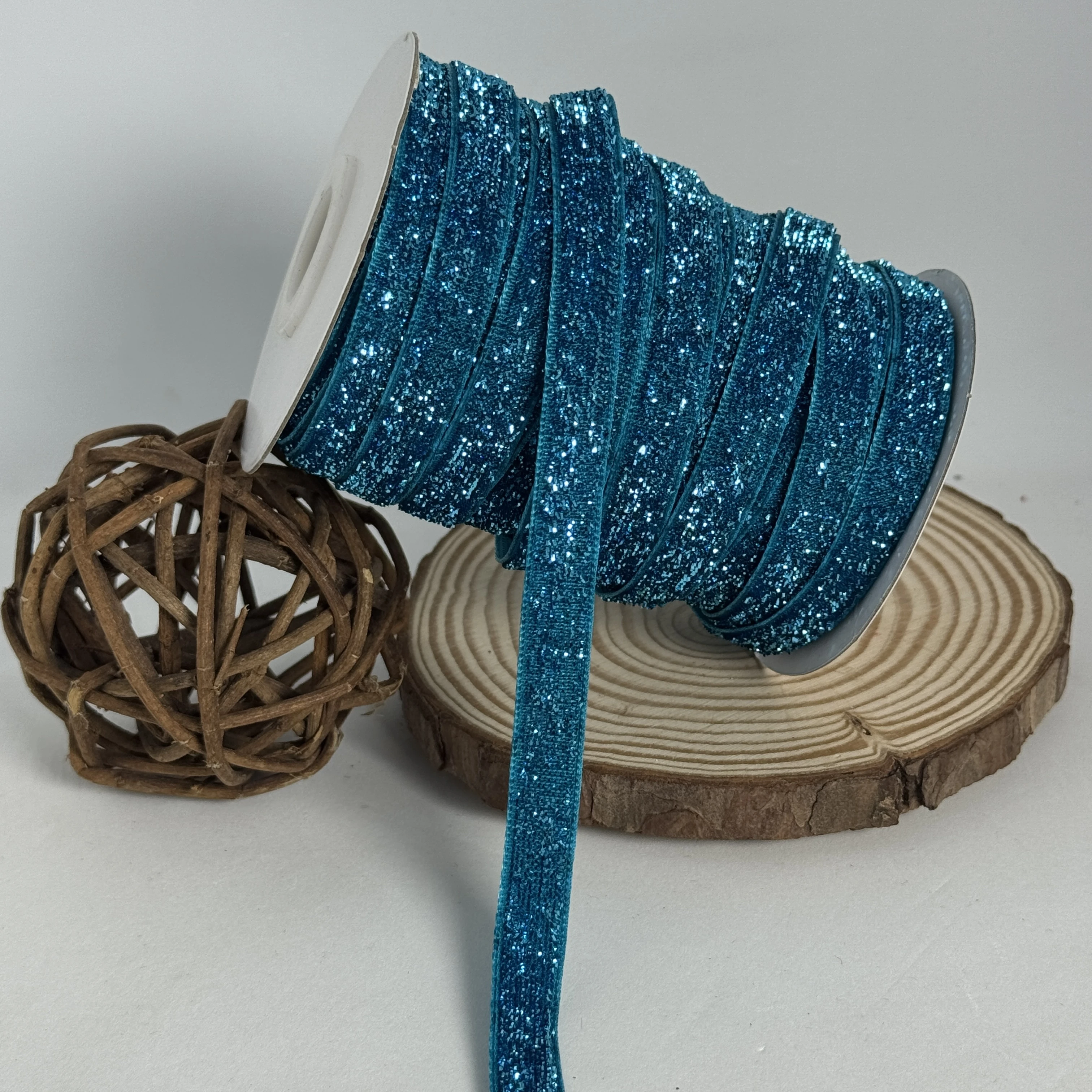 Стрічка оксамитова парча люрекс 1 см (25 ярдів/22,75 м.), 13 бірюза