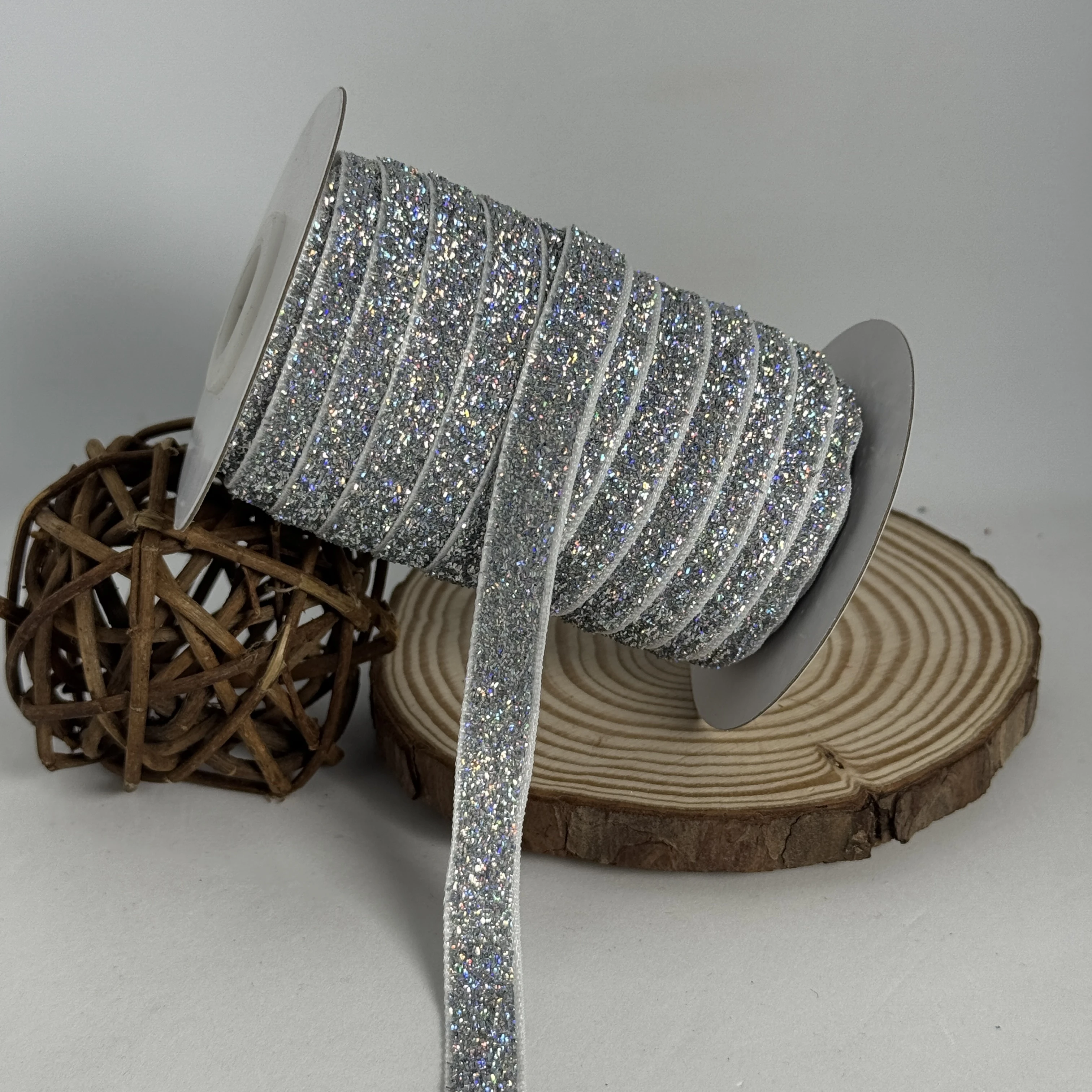 Стрічка оксамитова парча люрекс 1 см (25 ярдів/22,75 м.), 30 срібло