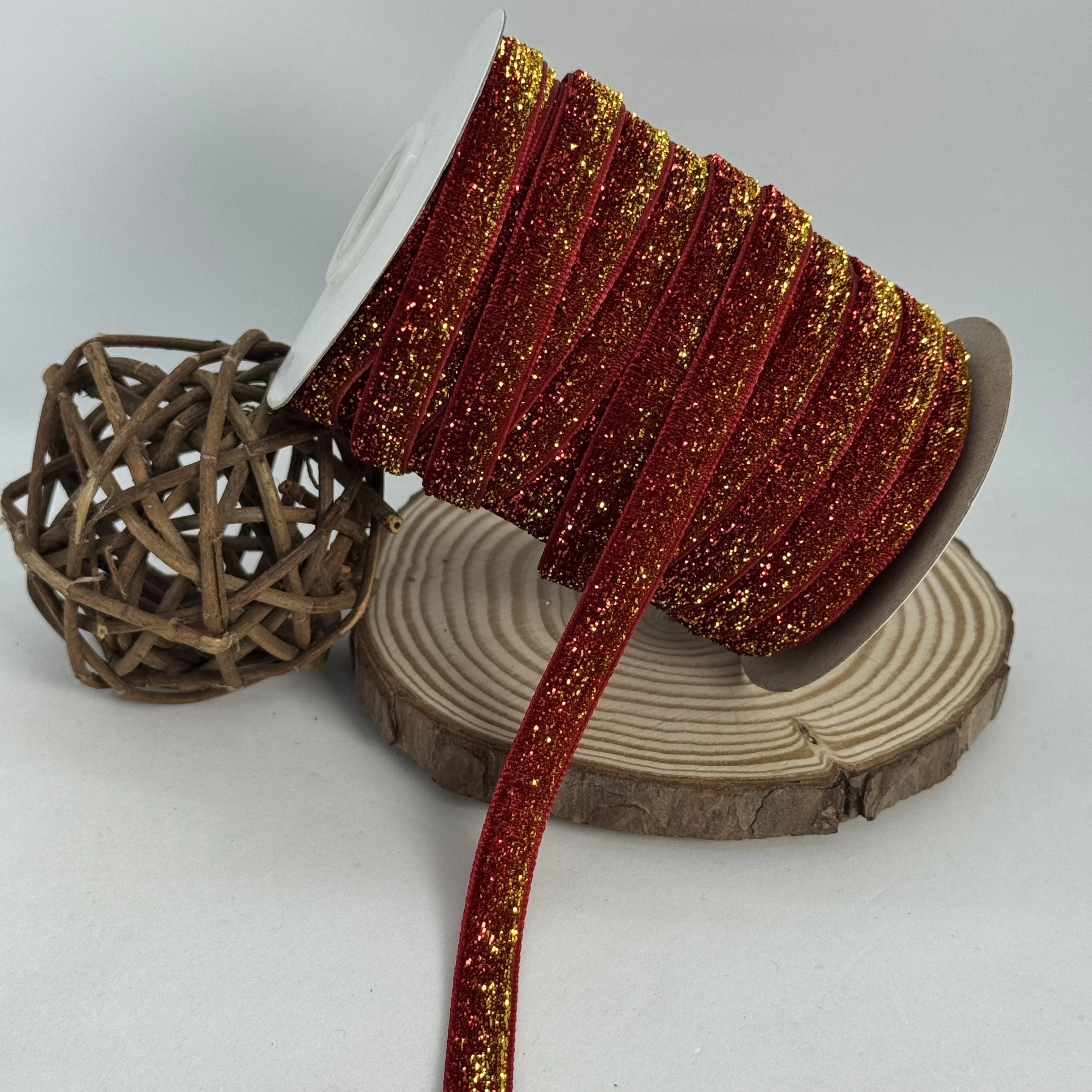 Стрічка оксамитова парча люрекс 1 см (25 ярдів/22,75 м.), 32 червоний + золото
