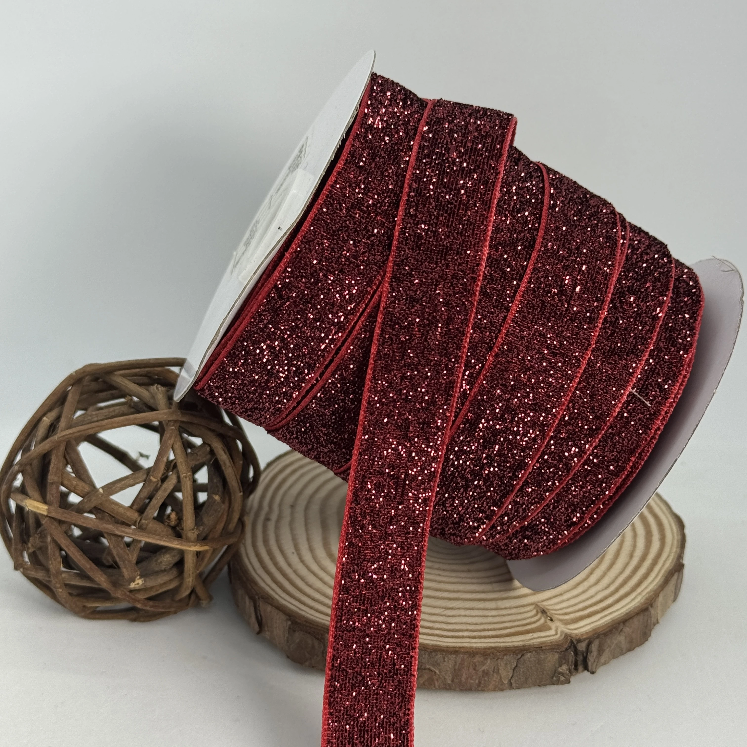 Стрічка оксамитова парча люрекс 2 см (25 ярдів/22,75 м.), 10 бордовий