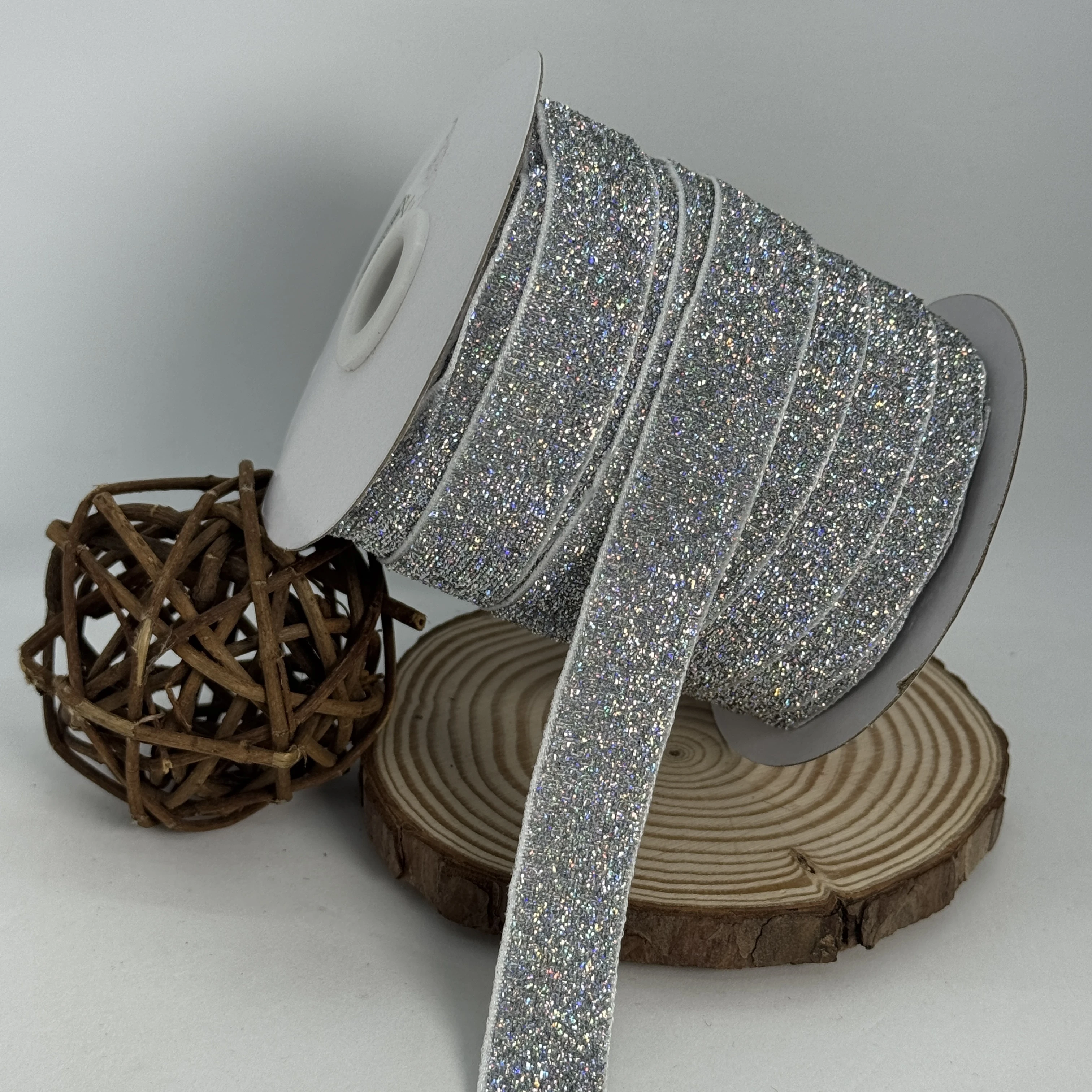 Стрічка оксамитова парча люрекс 2 см (25 ярдів/22,75 м.), 30 срібро АВ
