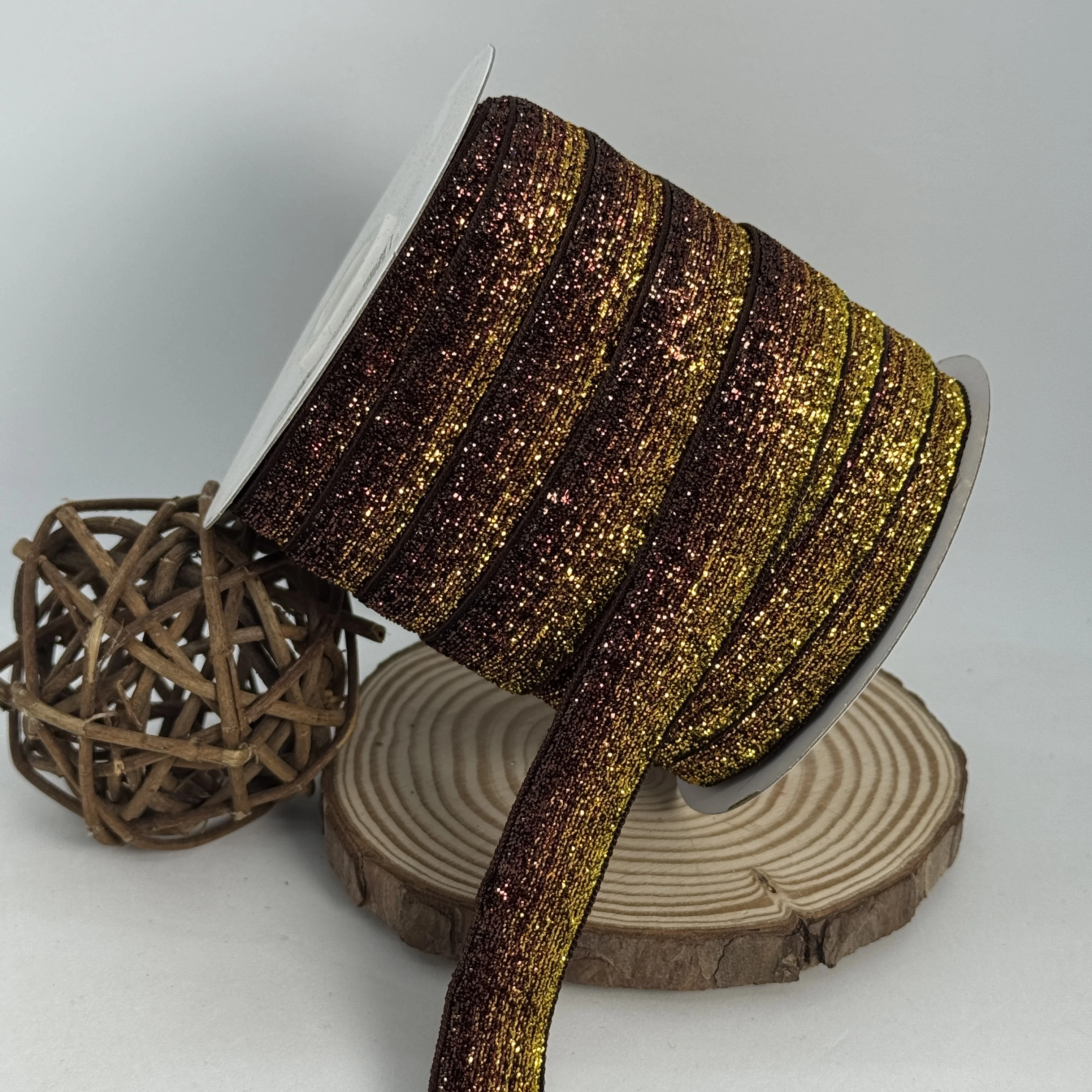 Стрічка оксамитова парча люрекс 2 см (25 ярдів/22,75 м.), 31 коричневий + золото