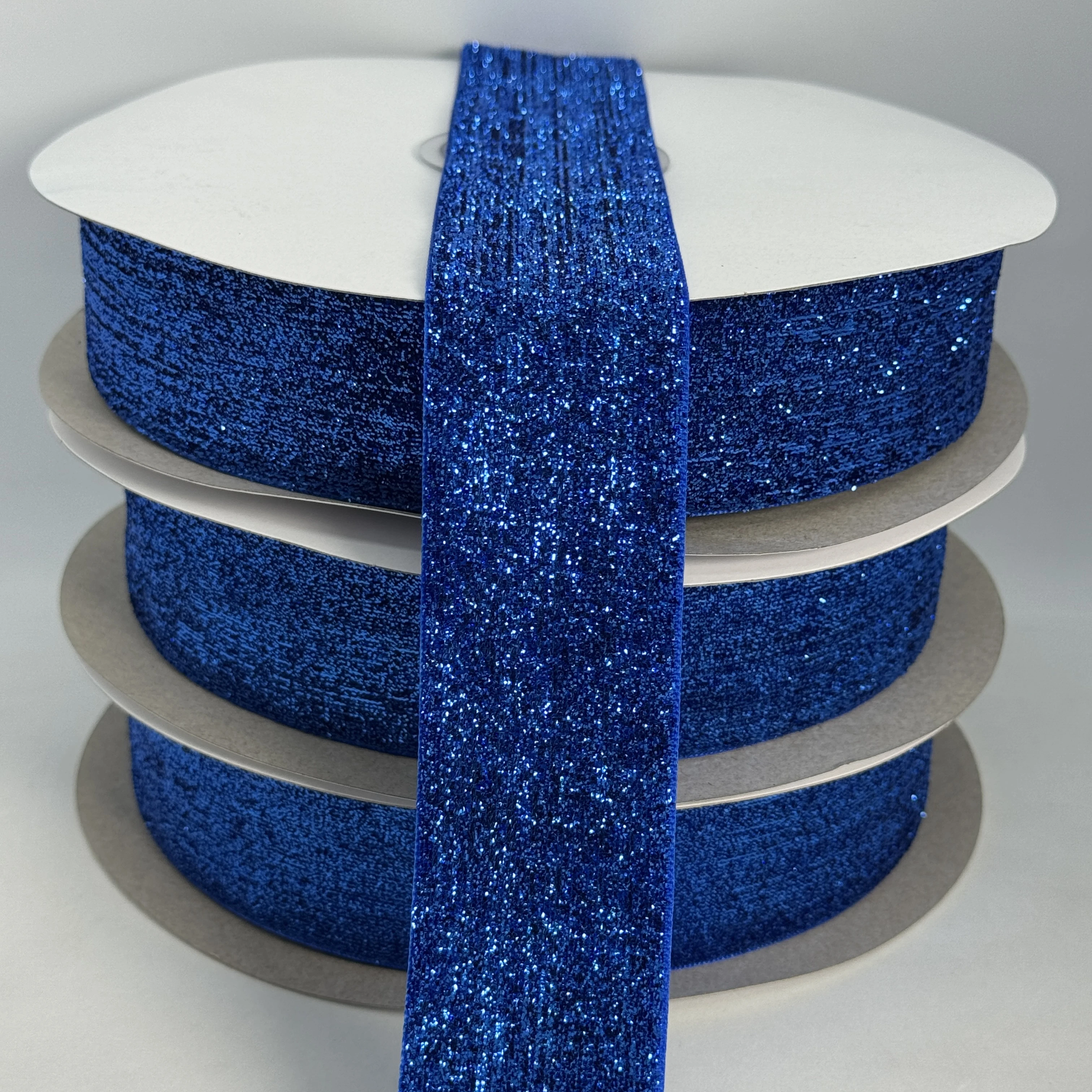 Стрічка оксамитова парча люрекс 3.8 см (25 ярдів/22,75 м.), 01 електрик
