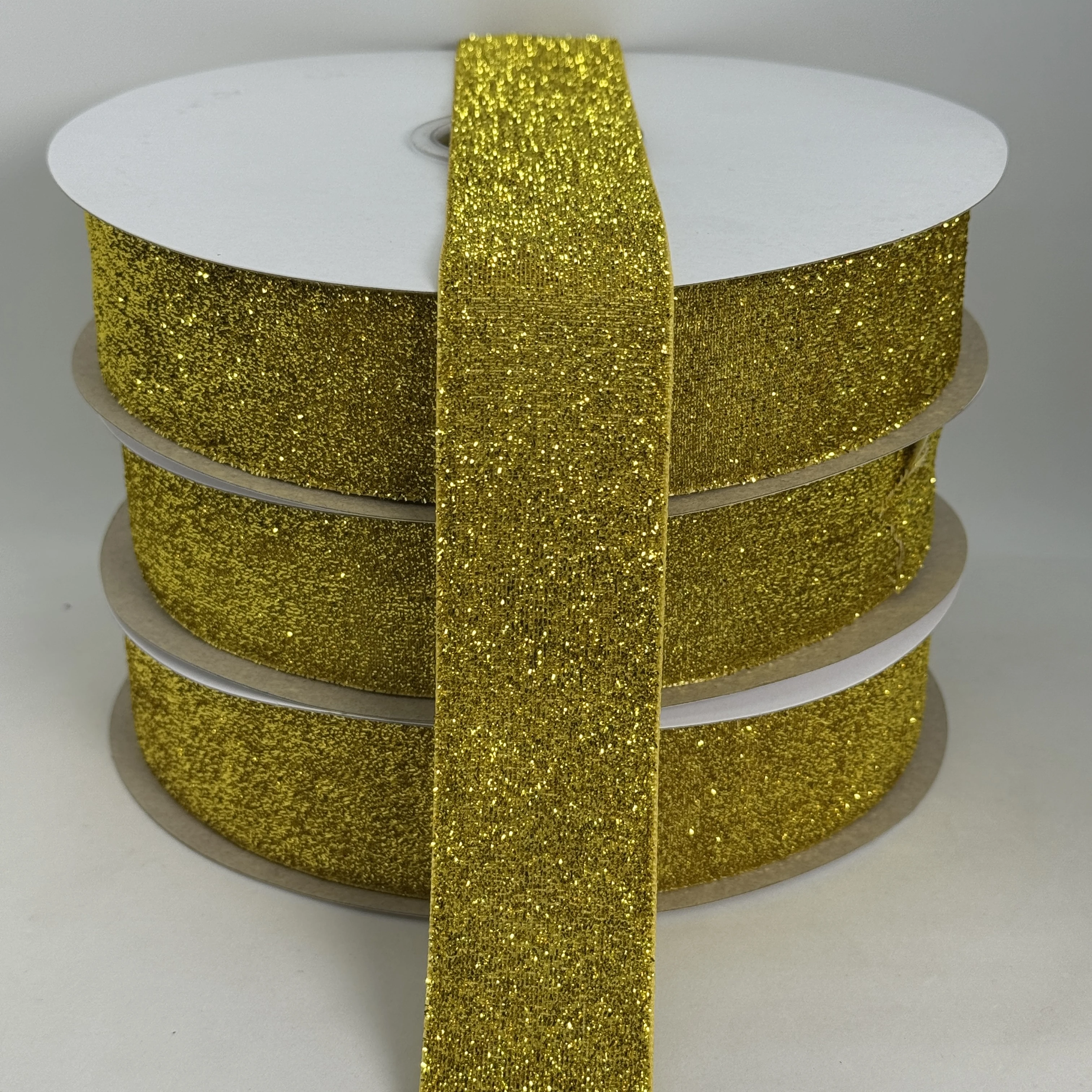 Стрічка оксамитова парча люрекс 3.8 см (25 ярдів/22,75 м.), 02 золото