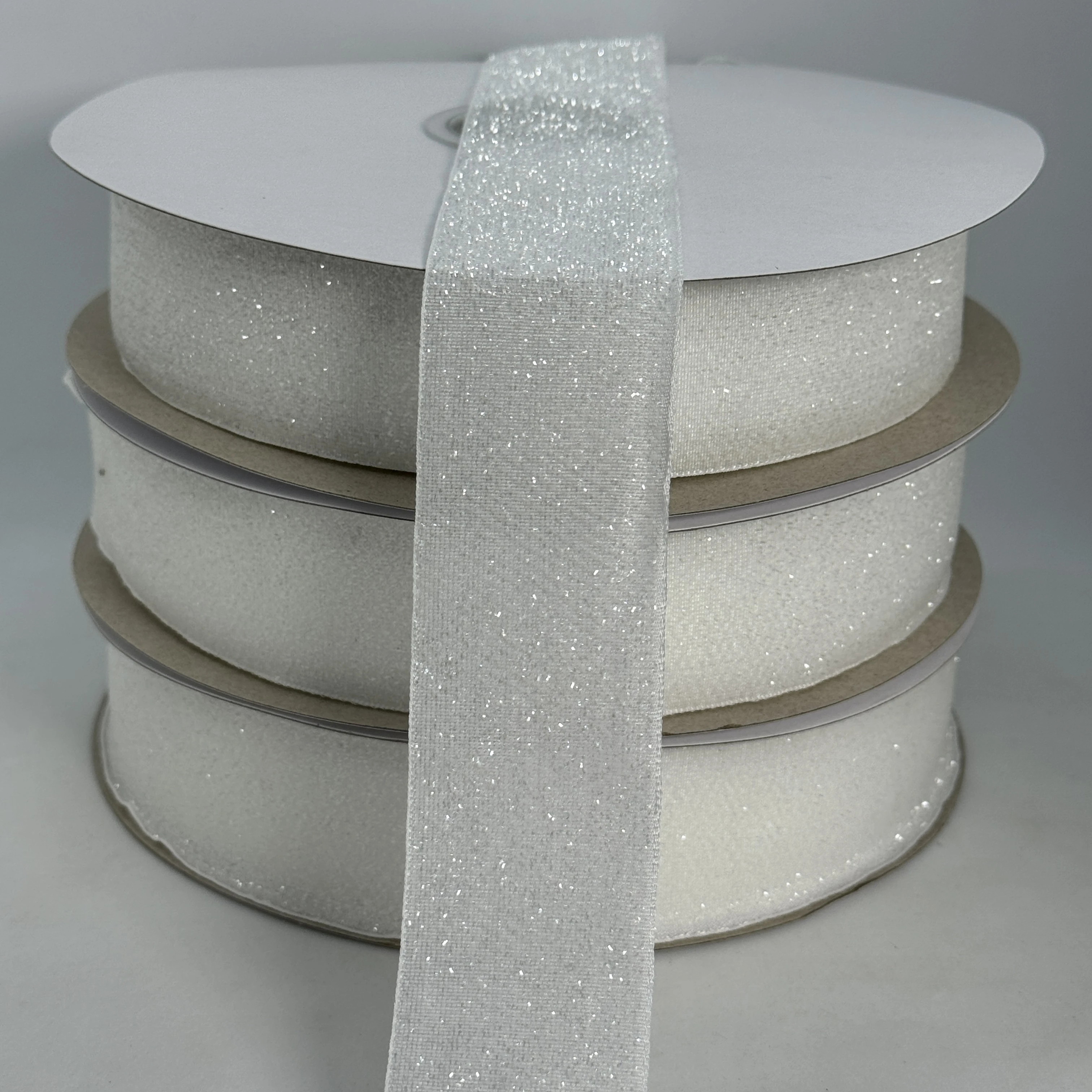 Стрічка оксамитова парча люрекс 3.8 см (25 ярдів/22,75 м.), 07 білий
