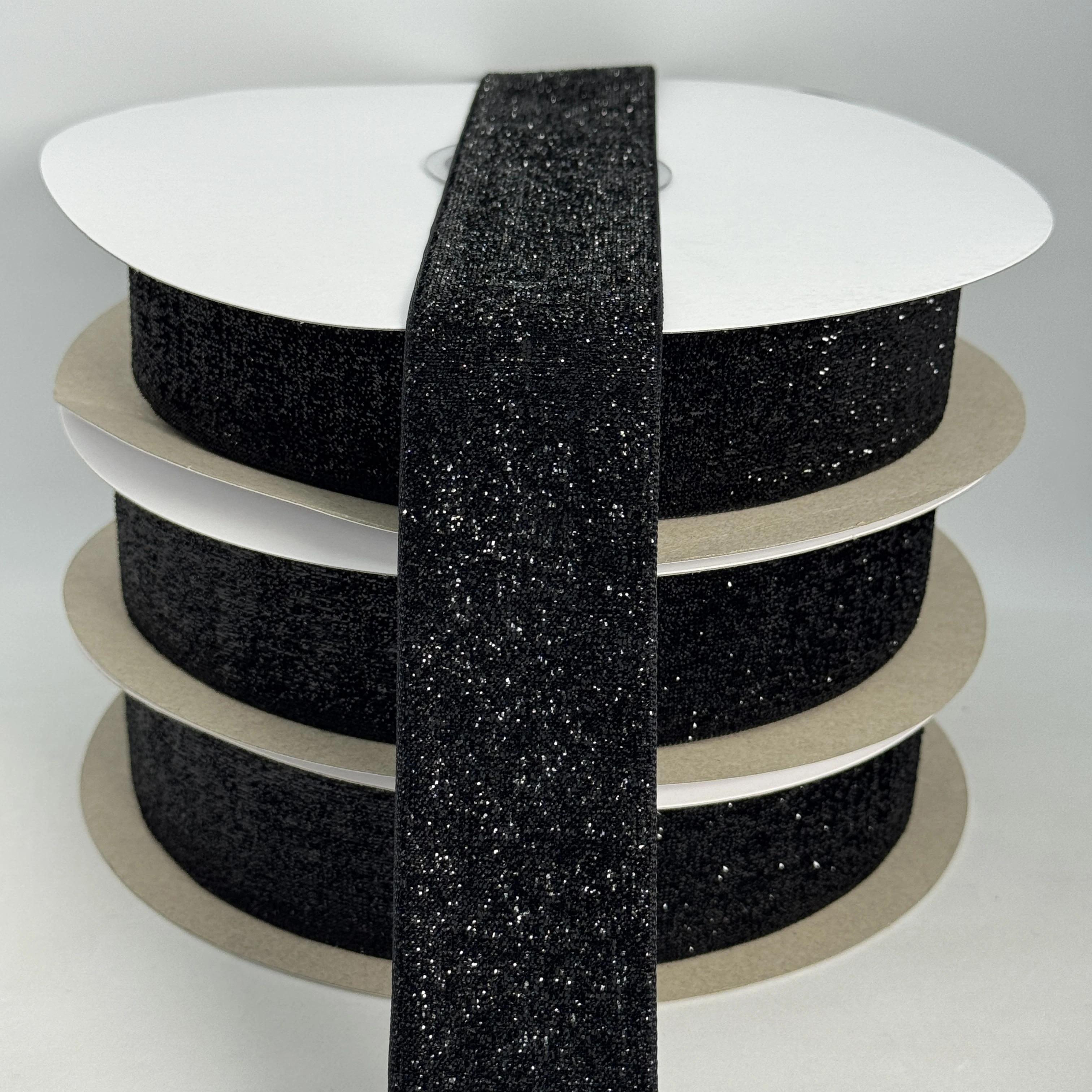 Стрічка оксамитова парча люрекс 3.8 см (25 ярдів/22,75 м.), 08 чорний