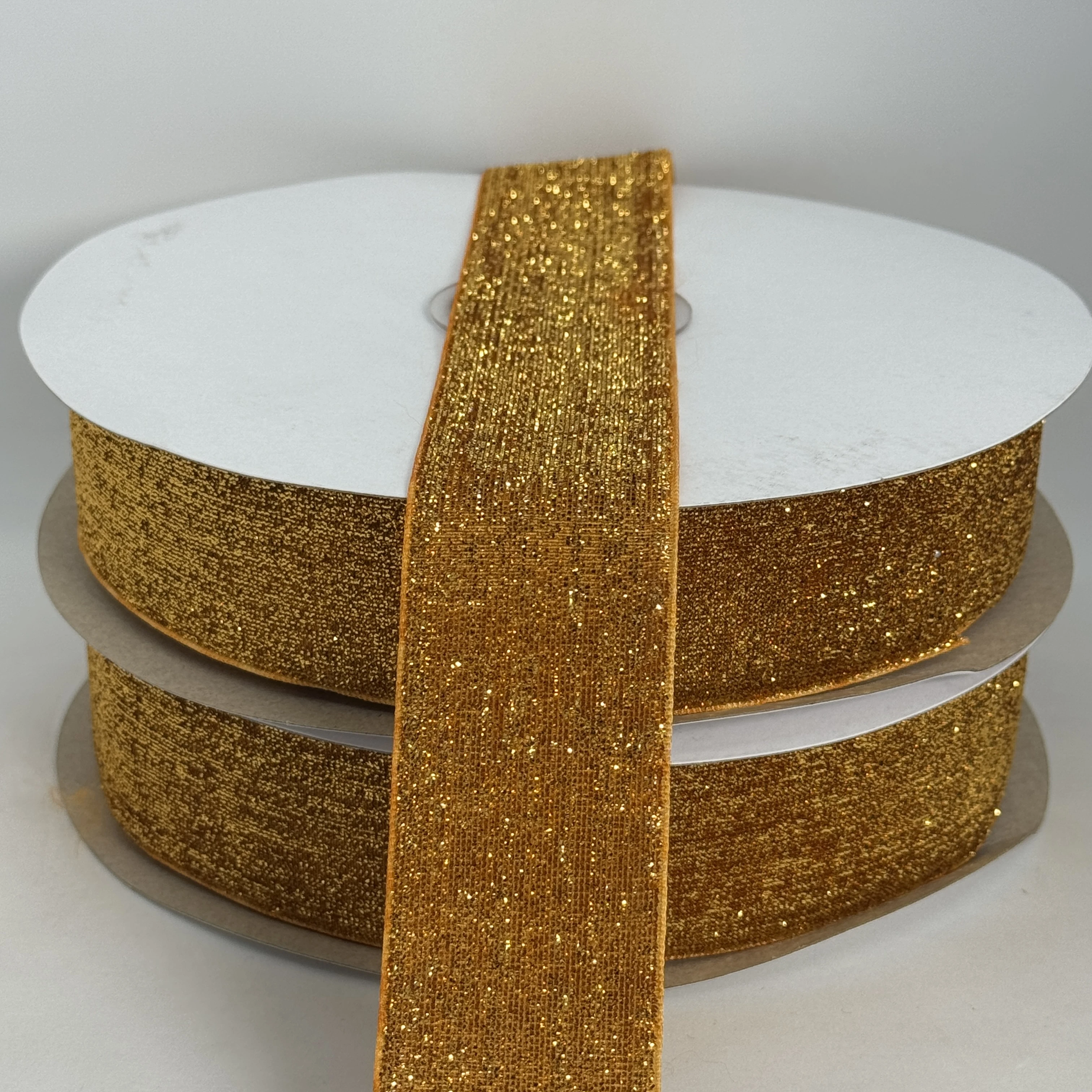 Стрічка оксамитова парча люрекс 3.8 см (25 ярдів/22,75 м.), 09 темне золото