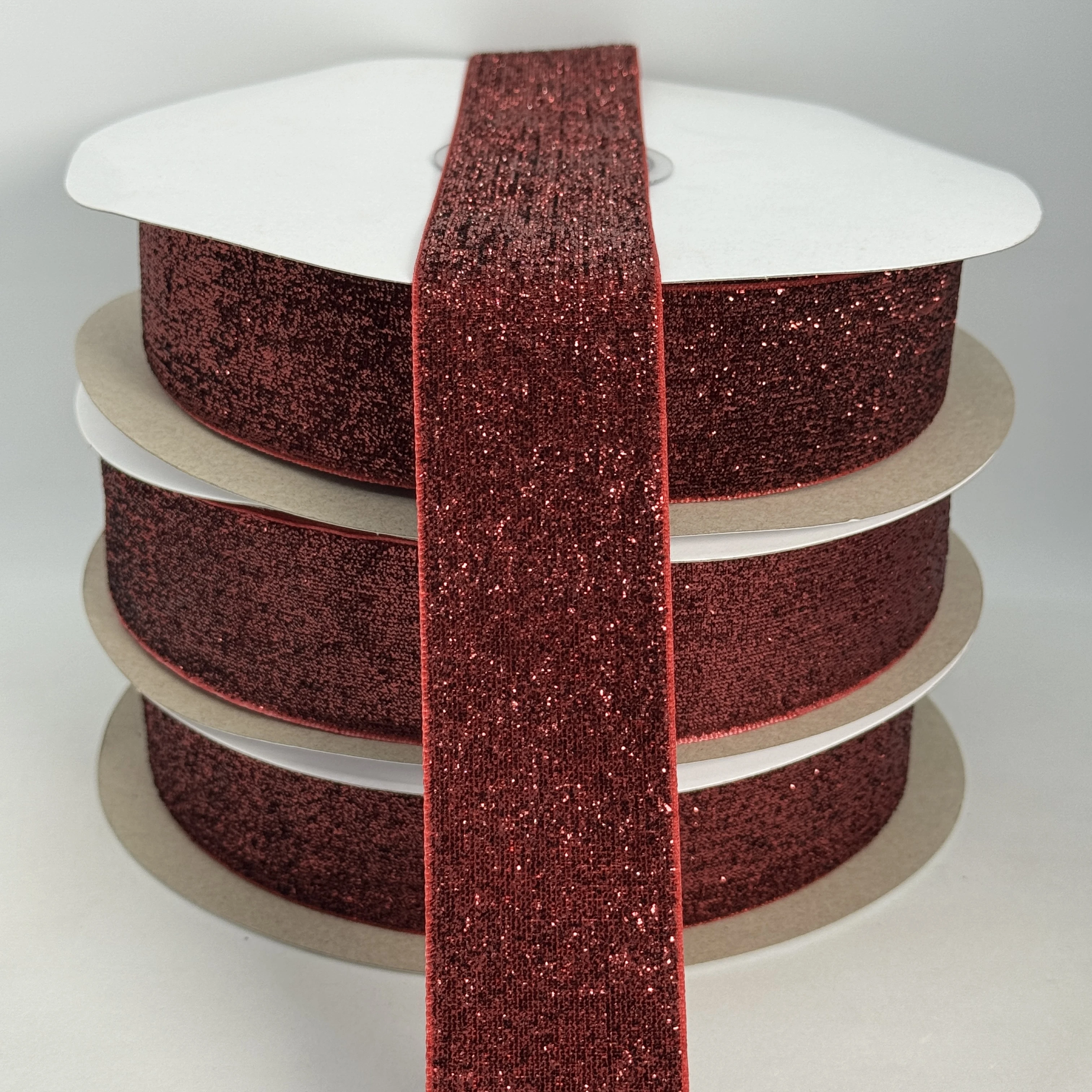 Стрічка оксамитова парча люрекс 3.8 см (25 ярдів/22,75 м.), 10 бордовий