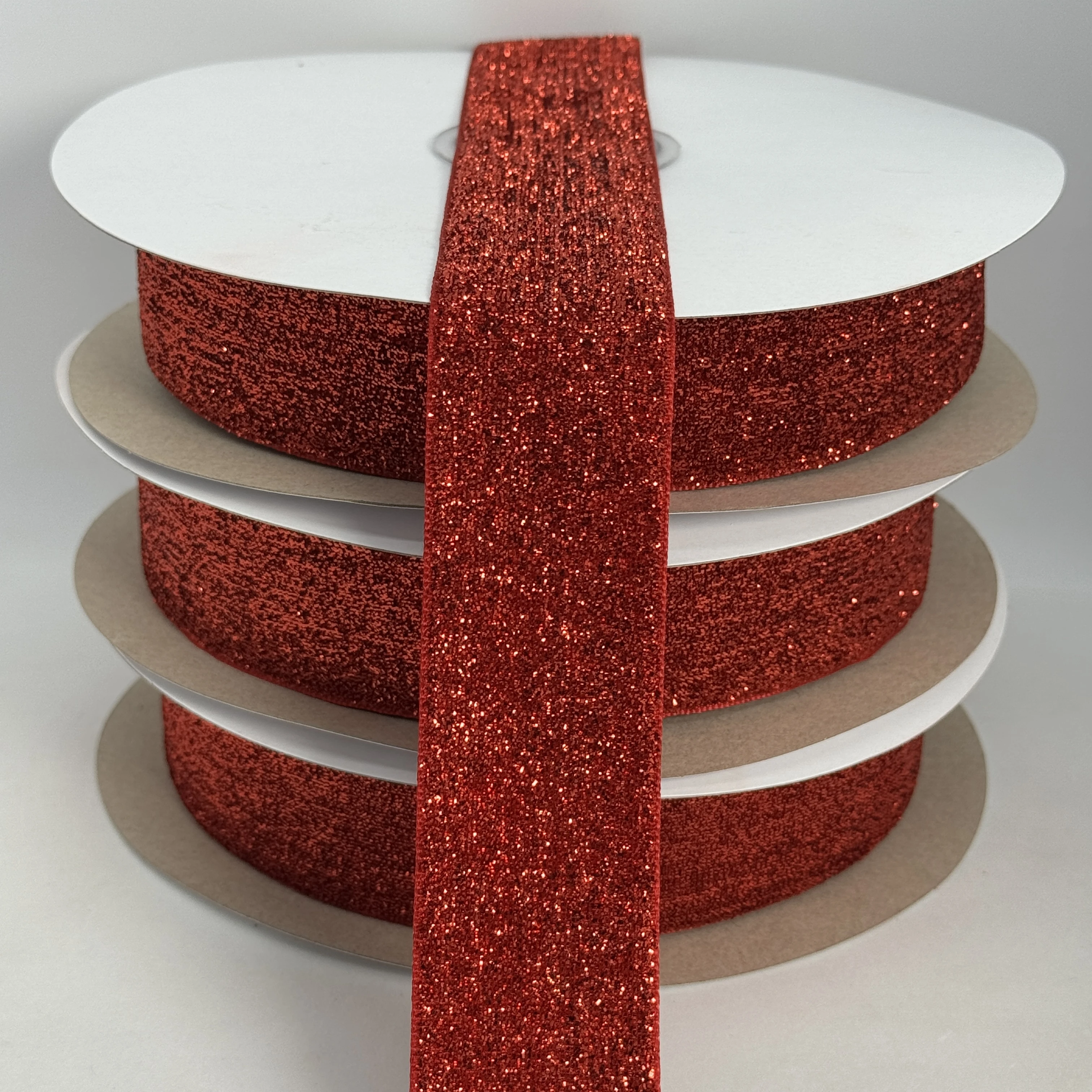 Стрічка оксамитова парча люрекс 3.8 см (25 ярдів/22,75 м.), 16 червоний