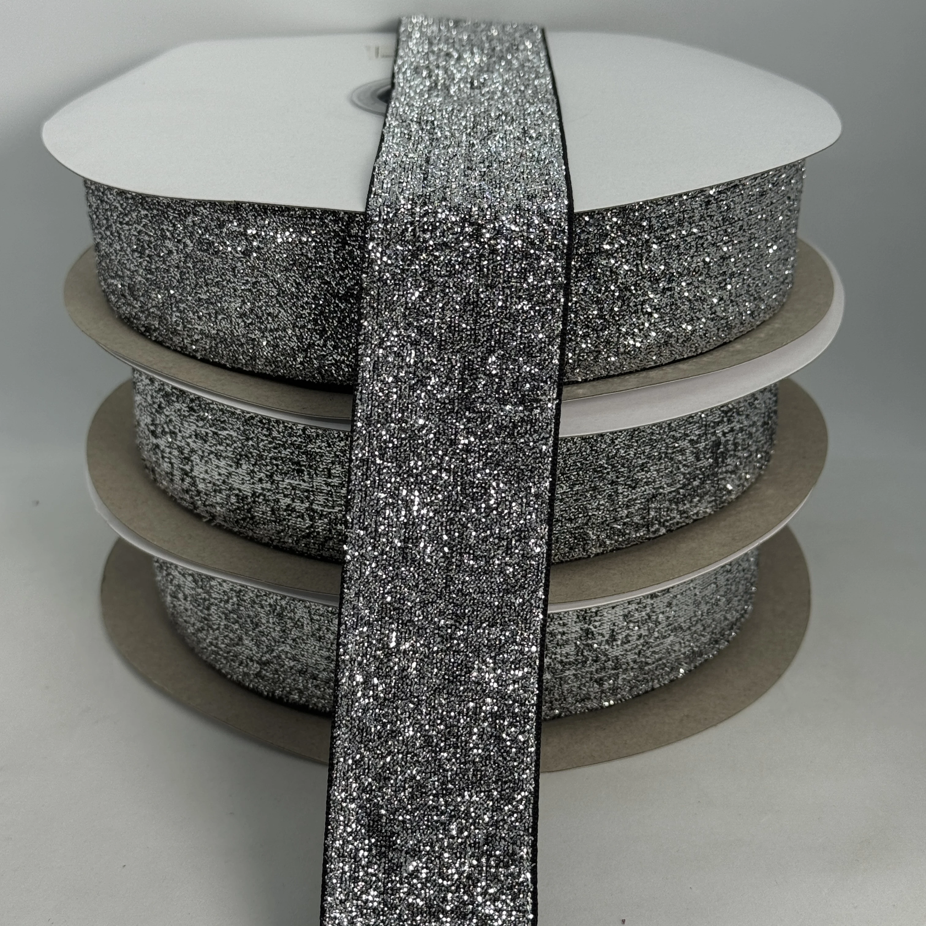 Стрічка оксамитова парча люрекс 3.8 см (25 ярдів/22,75 м.), 17 срібло + чорний