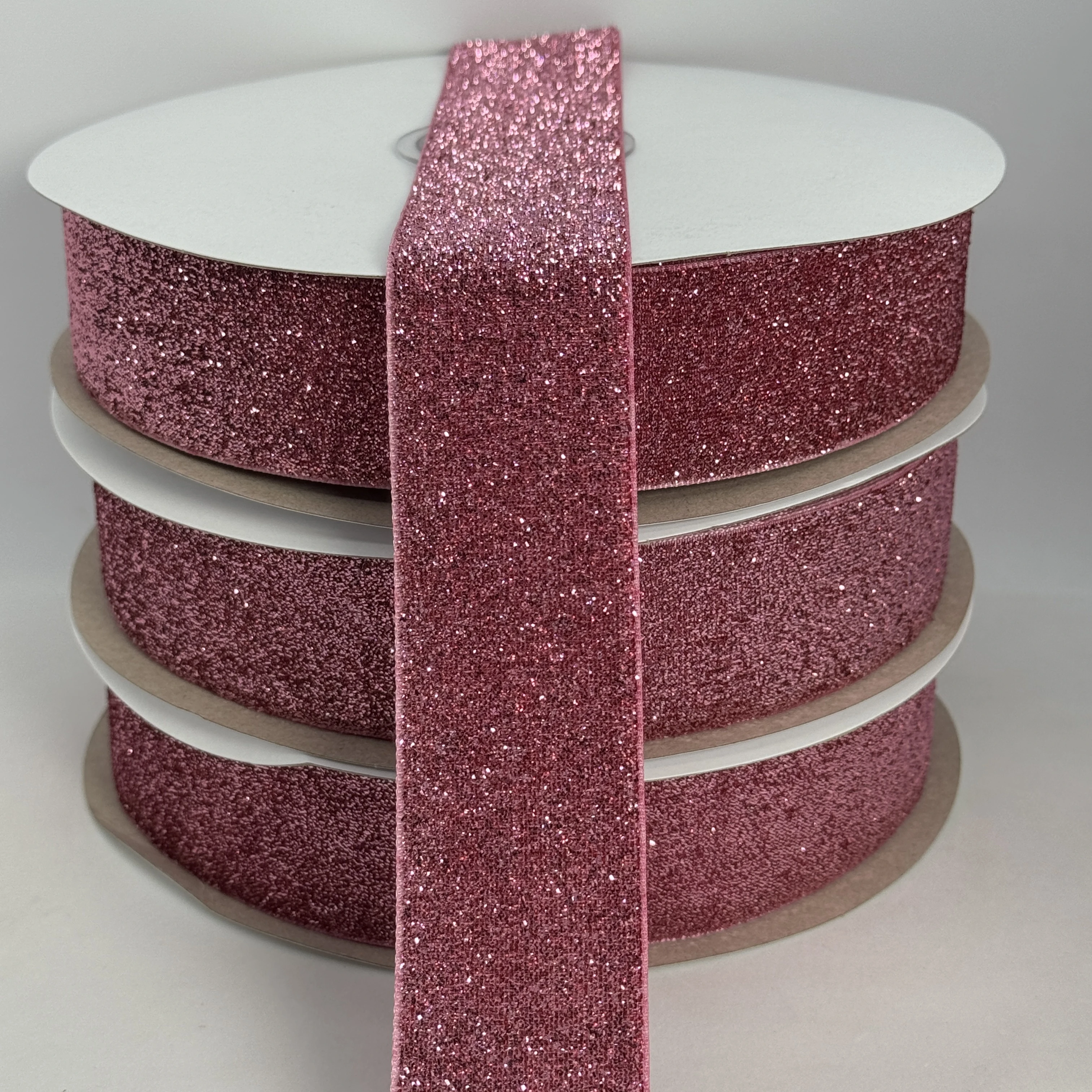 Стрічка оксамитова парча люрекс 3.8 см (25 ярдів/22,75 м.), 18 рожевий