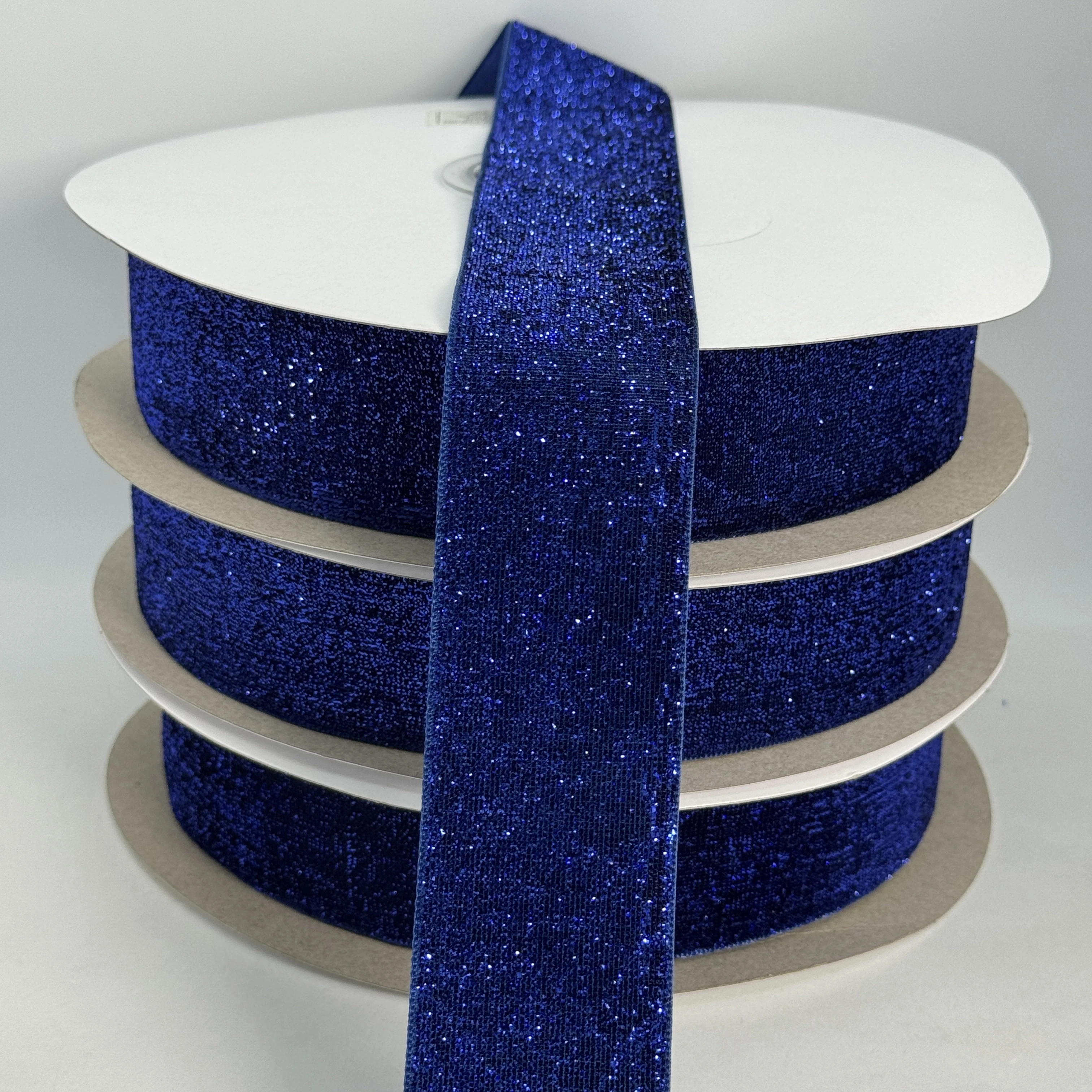 Стрічка оксамитова парча люрекс 3.8 см (25 ярдів/22,75 м.), 26 темний синій