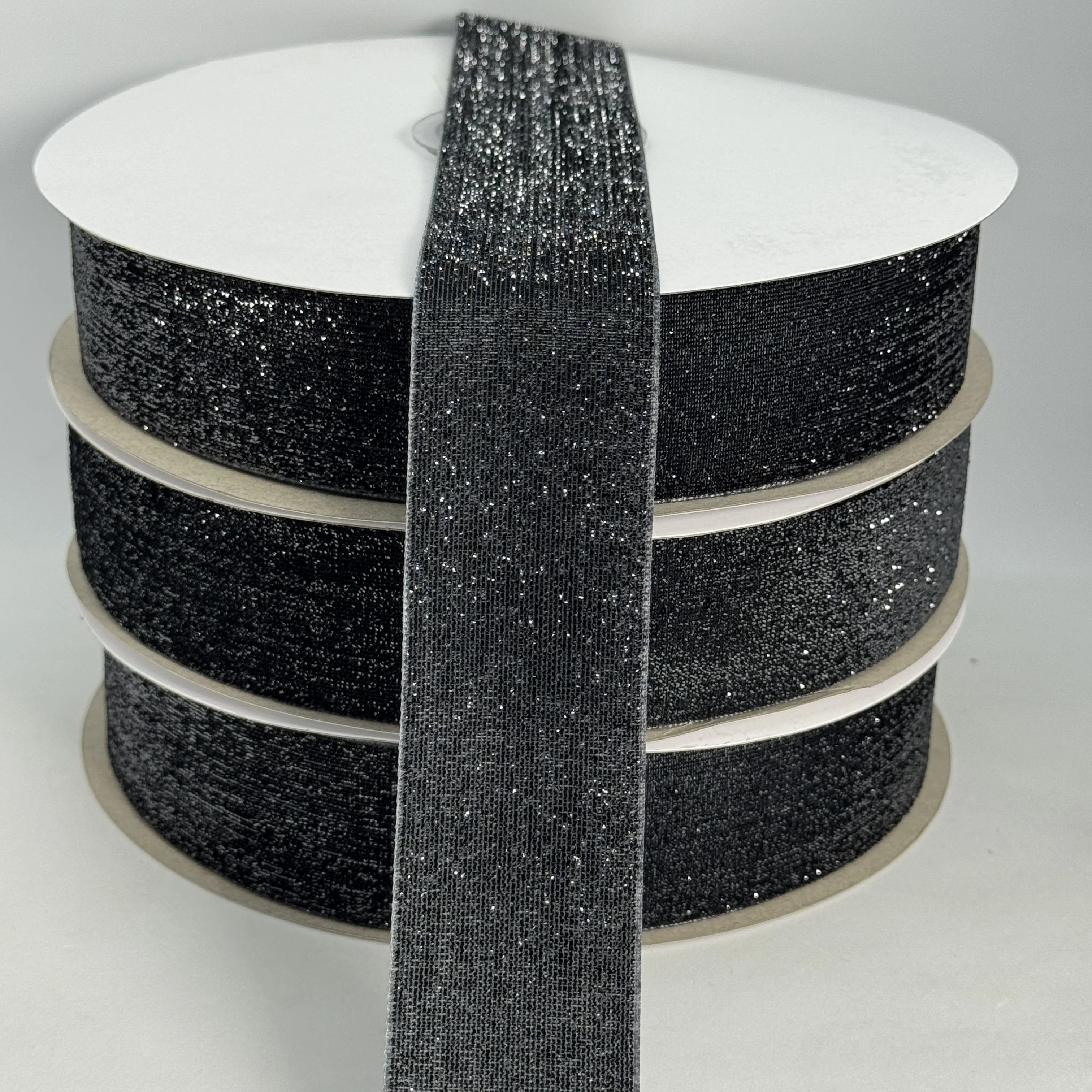 Стрічка оксамитова парча люрекс 3.8 см (25 ярдів/22,75 м.), 29 сірий