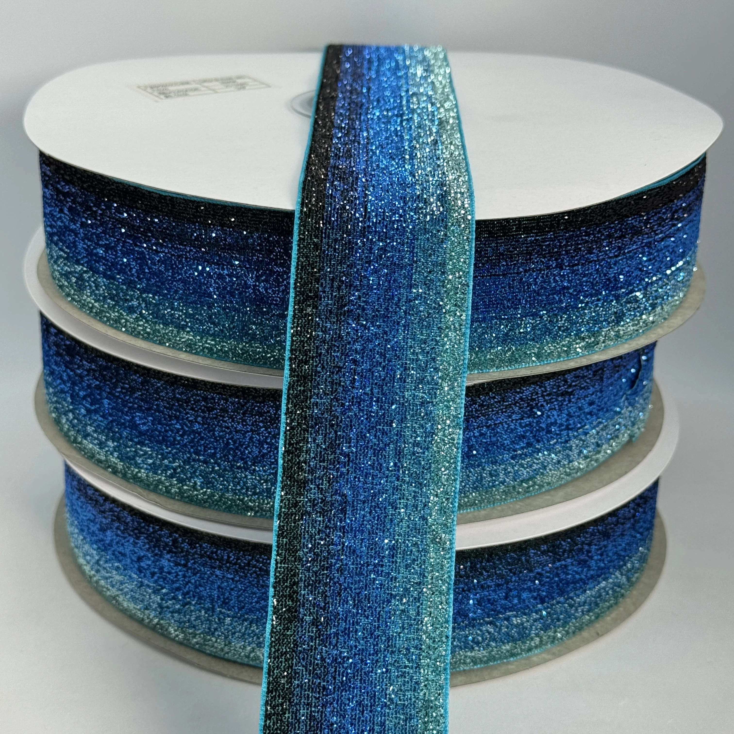 Стрічка оксамитова парча люрекс 3.8 см (25 ярдів/22,75 м.), 36 синій + бірюза