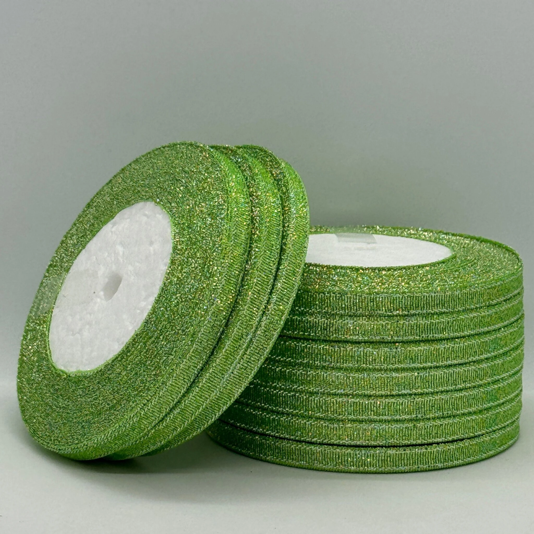 Тасьма парчева 0,6 см (10*25 ярдів/22,75 м.), 159 срiбло+зелений