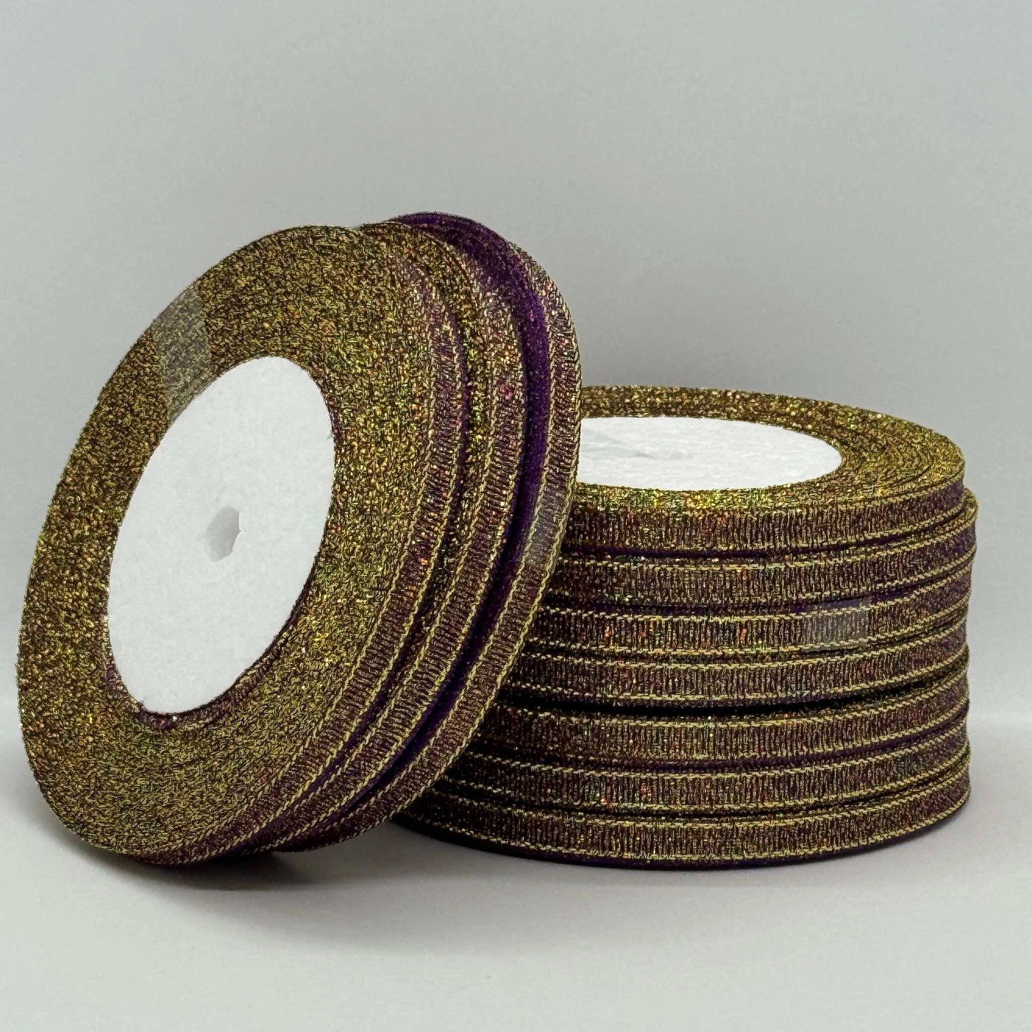 Тасьма парчева 0,6 см (10*25 ярдів/22,75 м.), 46 баклажан + золото