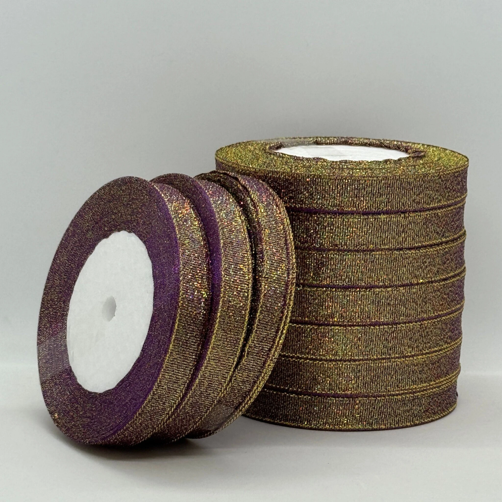 Тасьма парчева 1,2 см (10*25 ярдів/22,75 м.), 46 баклажан + золото