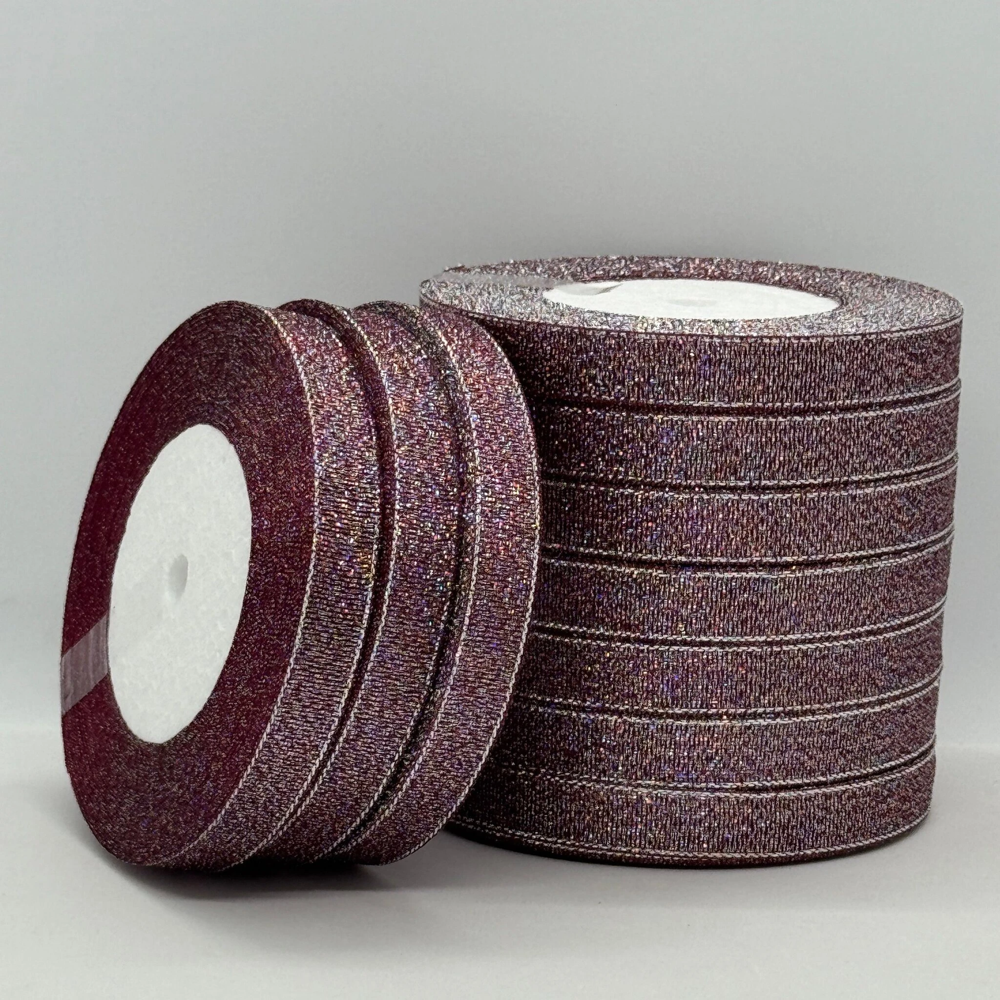 Тасьма парчева 1,2 см (10*25 ярдів/22,75 м.), 83 бордо + срібло